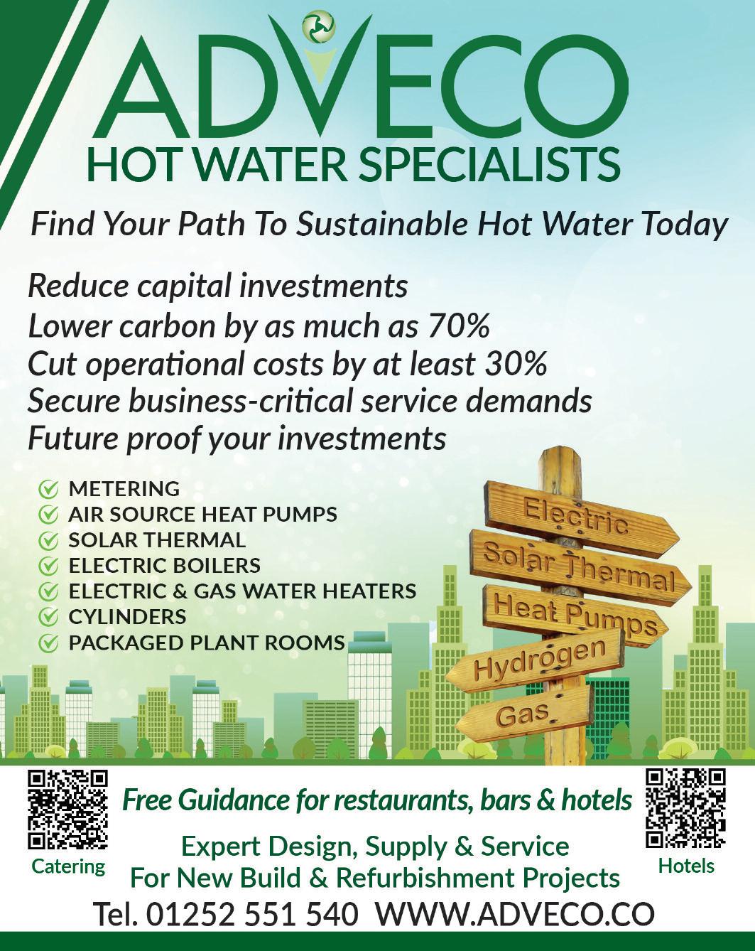 Unless a new build, which will be electrical-based, most refurbishments will look to either improve on existing gas systems or aim to completely replace them with electrical alternatives, typically heat pumps and/or direct-electric heating The latest generation of electric boiler, such as Adveco s ARDENT, offers new levels of resilience , with multiple immersions in a protected sealed indirect loop arrangement that dramatically cuts issues associated with limescale damage in hard water areas Digital controls and monitoring ensure 24/7 operational ser vice Adveco Live Metering of the hot water demands of a building is a quick, non-invasive , and extremely costeffective means of gauging needs It also provides application design which enables owner/managers to develop realistic and sustainable development strategies which deliver active results today with low to no