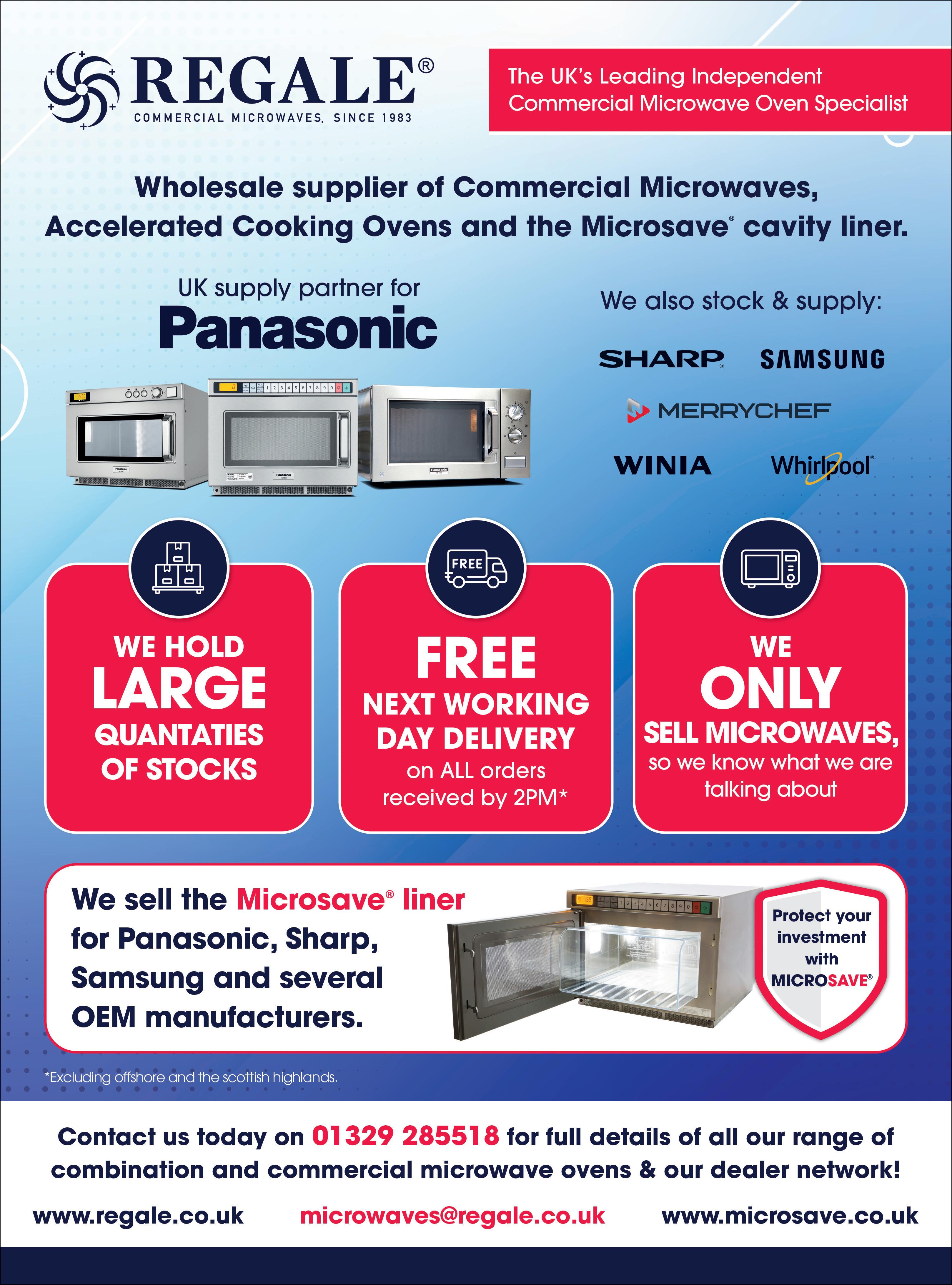 For more information, please email; Microwaves@regale.co.uk or call Regale on 01329 285518.