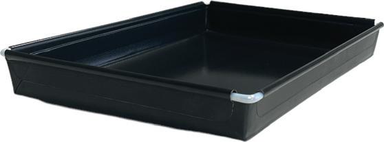 The trays measure 290mm x 260mm and are 30mm deep. They are in stock and available in Blue, Black and Green.