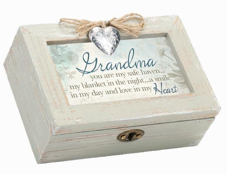 Christian product Designed and Finished in the U.S.A. MOM WHITE CARVED LOOK MUSIC BOX I could never explain how much you mean to me. There are no words that can encompass how much I love you. Song: "Amazing Grace" 81/2"x 61/2 x 21/4"H MDF Minimum Quantity 2/box [24F-017-50] WM18WH