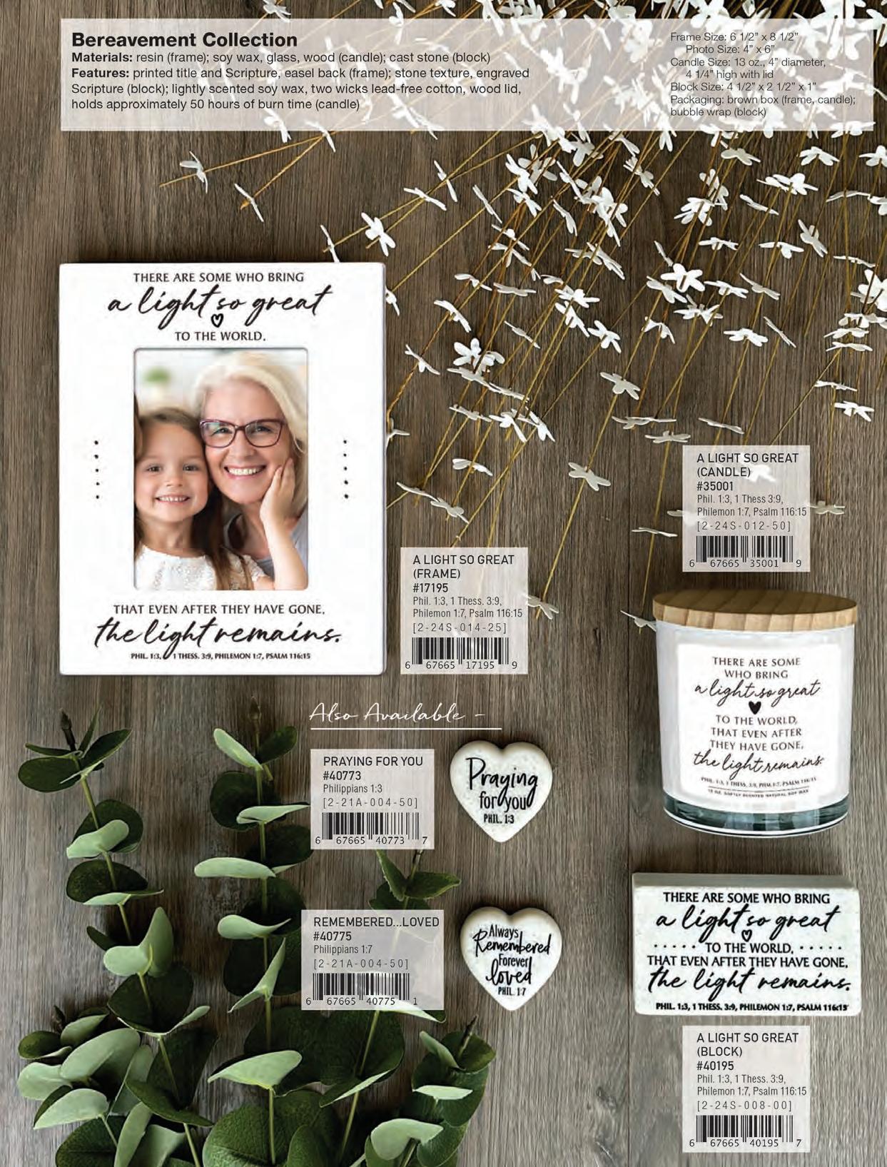 IMB221S )03799-JEEICd Song: Amazing Grace Size: 8” x 6” x 2.75” Fits: 6” x 4” Photo Minimum Quantity 2 [24C-022-50] © Karen Ray, “Wings of Gold” DLTN64SWH )03799-FABJAd 5”x 5”x 6.7”H Diecut Metal Lantern Minimum Quantity 1 [24C-017-00] Song: Amazing Grace Size: 8” x 6” x 2.75” | Fits: 6” x 4” Photo Minimum Quantity 2 [24C-022-50] © Karen Ray PR277S )33303-IFFHCh Song: How Great Thou Art 6” x 4” x 2.5” | Fits 4.5” x 2.5” Photo Minimum Quantity 2 [24C-015-50] © Karen Ray, “Wings of Gold” LTN126SW )03799-DFJEBc 6.5”x 6.5”x 13”H Wooden Lantern with LED Candle Minimum Quantity 1 [24C-029-50] EDF47S )03799-IIAIFf Frosted Glass Continuous mist; lasts up to 8 hours LED light has 8 different color settings It can also be used with essential oils and is UL Approved. Automatic shut-off timer or shuts off after water runs out Minimum Quantity 1 [24C-024-50] © Karen Ray, “Wings of Gold” HMW-10-09BK )03799-IGAICg 10” Black Heart Frame Mirror Minimum Quantity 2 [24C-011-00] © “ Wings of Gold,” by Karen Ray Wings of Gold COLLECTION Designed and Finished in the U.S.A. Christian Products