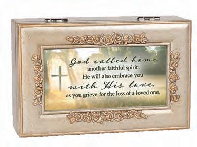 God has you in His arms - we have you in our hearts. Plays "Amazing Grace" 8"x 6"x 23/4"H Plastic
