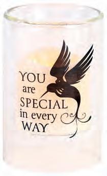 YOU ARE SPECIAL IN EVERY WAY GLASS CANDLE HOLDER 4"D x 6"H Glass 3" LED Candle Included, Uses AAA Batteries (not included) Minimum Quantity 2/box [24F-016-00] GCH-06-4 )03799-GEIBGf HUMMINGBIRDS MUSIC BOX Legends say that hummingbirds float free of time, carrying hope for love, joy and happiness. This is my wish for you. Song: "You Light Up My Life" 8"x 6"x 23/4"H Plastic Minimum Quantity 2/box [24F-022-50] MB2331
