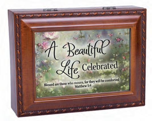This remembrance keepsake has been in our line with endless success for years! It has a rich walnut finish and beautifully velvet lined box with a heartfelt sentiment. This provides memories that share the joy of the life of the loved one that has passed.