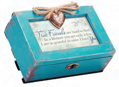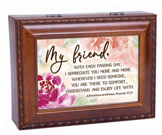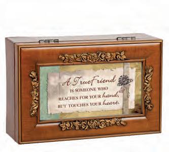 Good Friends help you To find important things when you have lost them... your smile, your hope, and your courage. Plays "That's What Friends Are For" 8"x 6"x 23/4"H Plastic Minimum Quantity 2/box [24F-022-50] MB2332 )03799-GEIGEg You have been there with me through all the good times and bad. We have laughed so hard together that it hurt... and we have cried together when no one else could feel or understand how we felt. You mean the world to me and you will always hold a very special place in my heart. Song: "That's What Friends Are For" 8"x 6"x 23/4"H Plastic Minimum Quantity 2/box [24F-022-50] MB2338 )03799-GFHCGg FRIENDSHIP MUSIC BOX WITH PHOTO OPENING Friendship is a treasure more valuable than gold. A gift from God more precious than any riches one could hold. Its worth cannot be measured. It grows as years go by. Friendship is a treasure one's money cannot buy. Ramona K. Cecil©Dicksons Plays "Ave Maria" 8”x 6'x 23/4”H Photo Opening: 4"x