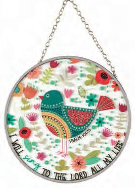 SING TO THE LORD OVAL SUNCATCHER Sing to the Lord. praise His name. Psalm 96:2 9”x 61/2”H Oval Glass with Suction Cup Color Window Box