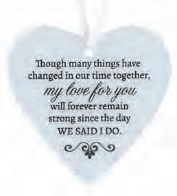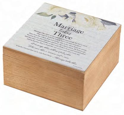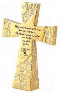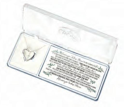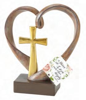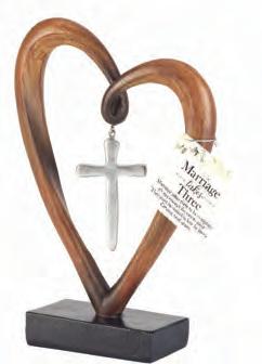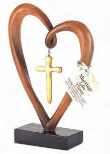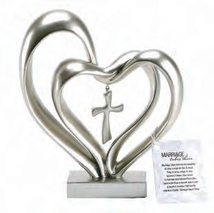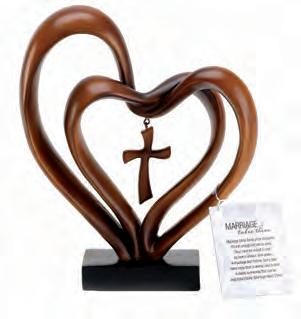 DOUBLE ETERNAL HEART/CROSS FIGURINES Verse on hangtag: Marriage takes three to be complete; It's not enough for two to meet. They must be united in love by love's Creator, God above. A marriage that follows God's plan takes more than a woman and a man. It needs a oneness that can be only from Christ - Marriage takes three. Beth Stuckwisch ©Dicksons Resin - 8”H White Box w/Color Label