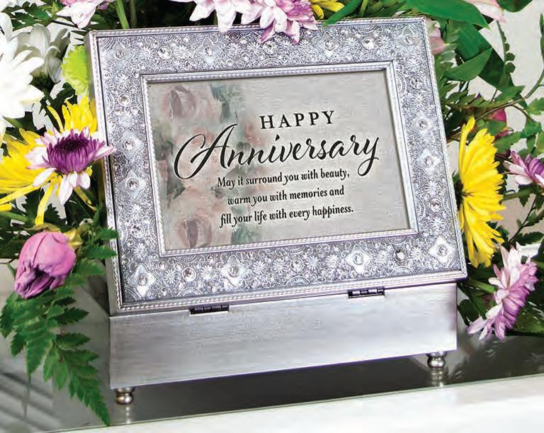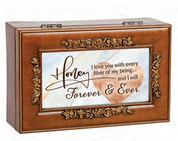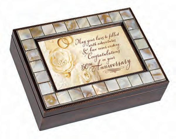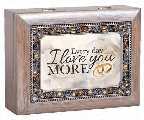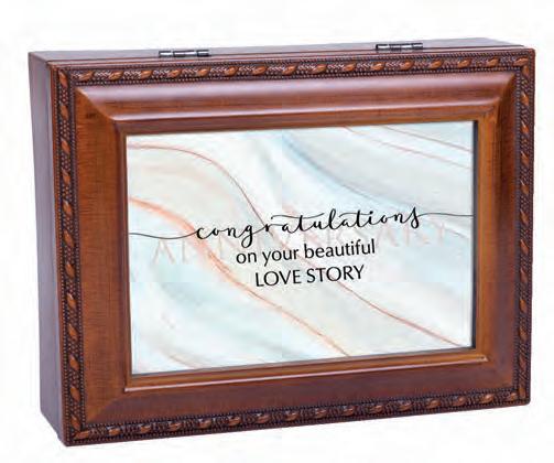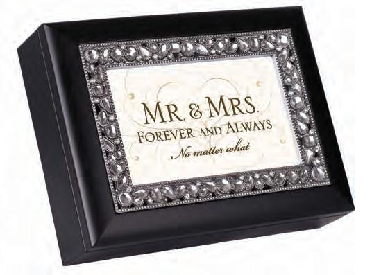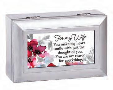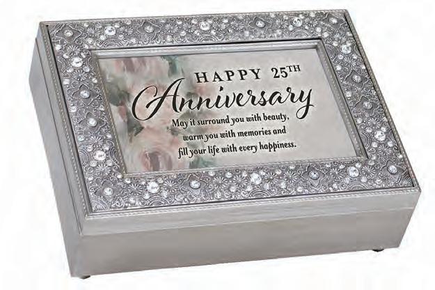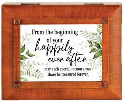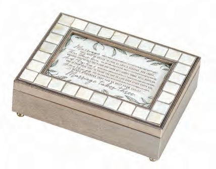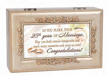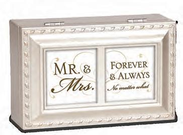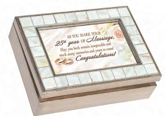 8"x 6"x 2 /4" H - Gray Brushed Mother of Pearl Finish Photo Opening: 4"x 6 H - White Box with Color Label Plays "Canon In D"