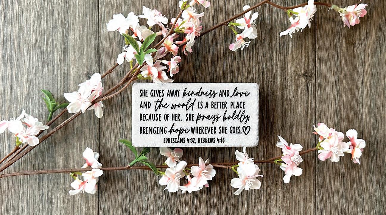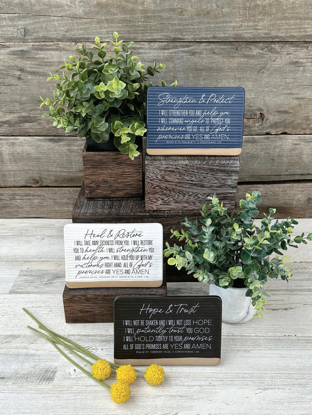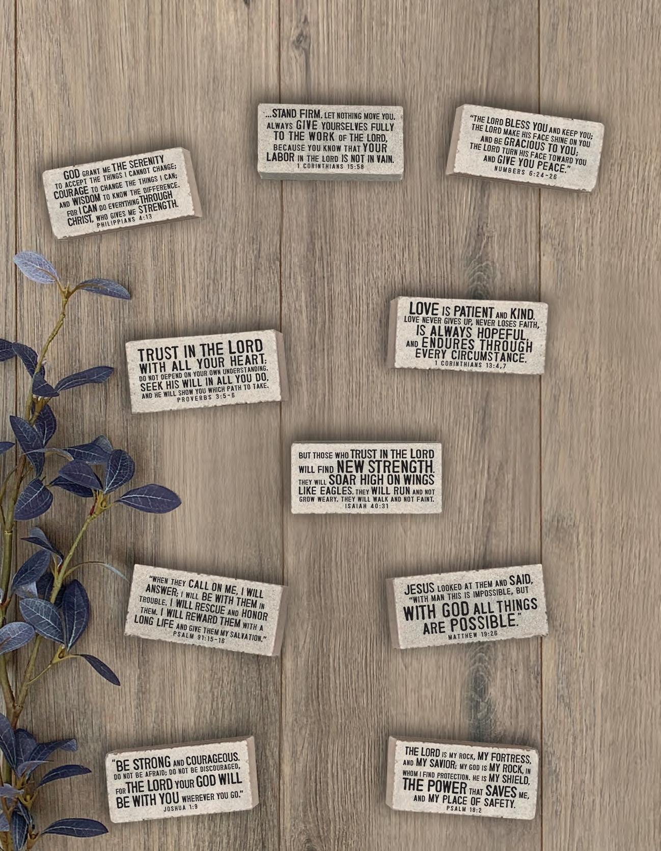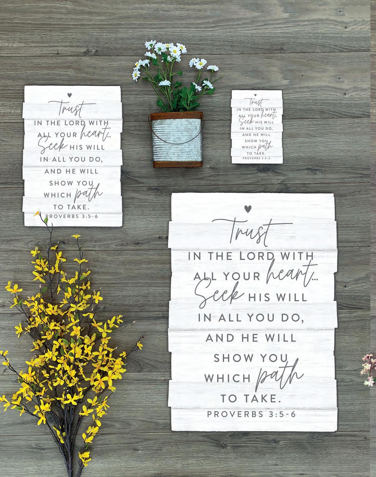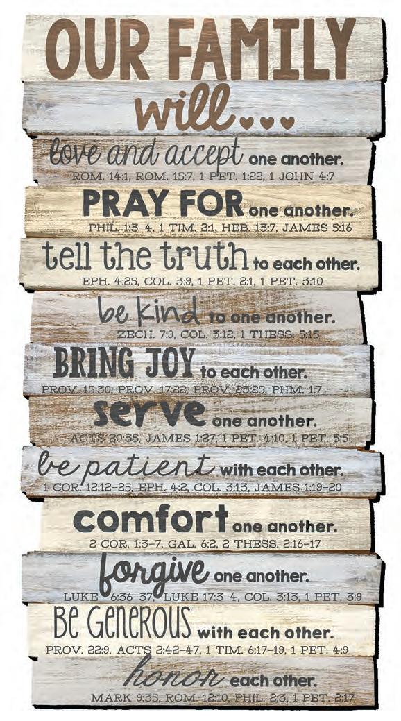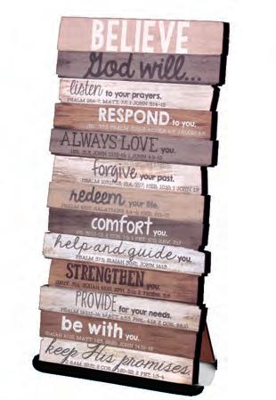 Features: printed title and Scripture, wooden accent charm, twine to hang