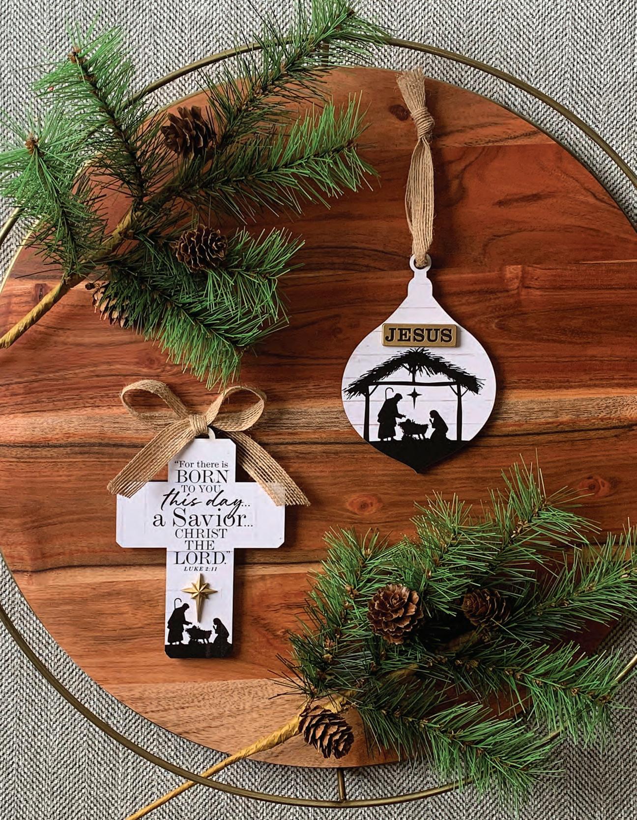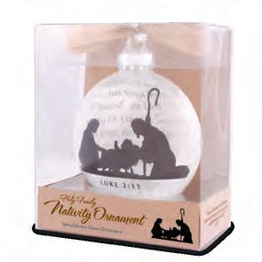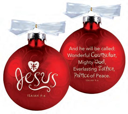 Features: engraved Scripture, Christmas poem on box, ribbon to hang