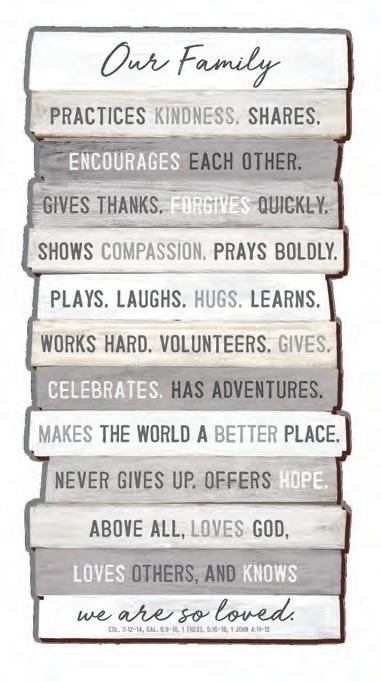 © 2024 Lighthouse Christian Products. All rights reserved worldwide. No part of this catalog may be reproduced without prior written permission from Lighthouse Christian Products. All products in this catalog are protected by U.S. copyrights owned by Lighthouse Christian Products. Trademarks are registered or unregistered trademarks of Lighthouse Christian Products. All photographic, clerical, typographical and printing errors are subject to correction. All prices are subject to change without notice. Items shown in this catalog are prototypes and may be modified in final production. None of the products in this catalog are intended for use by any person under 3 years old.