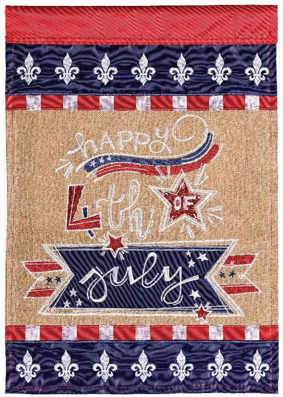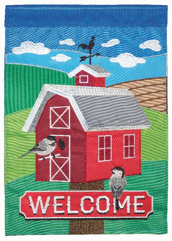 DOUBLE SIDED APPLIQUE FLAGS are decorated with a combination of fabric appliqués and exquisitely detailed embroidery. Made with a sturdy 360 denier polyester on both sides for a double thickness, these flags are heavier than most others on the market and will hold up longer. The fabric features either a satin-like smooth finish, or a burlap textured finish; many flags are a combination of both. Our customers have long been pleased with their beauty and quality.