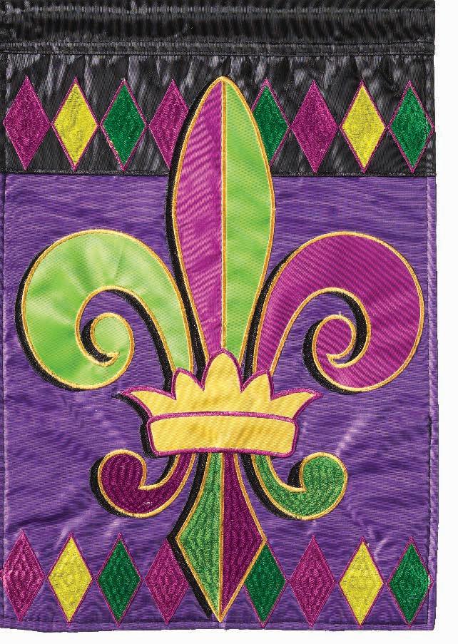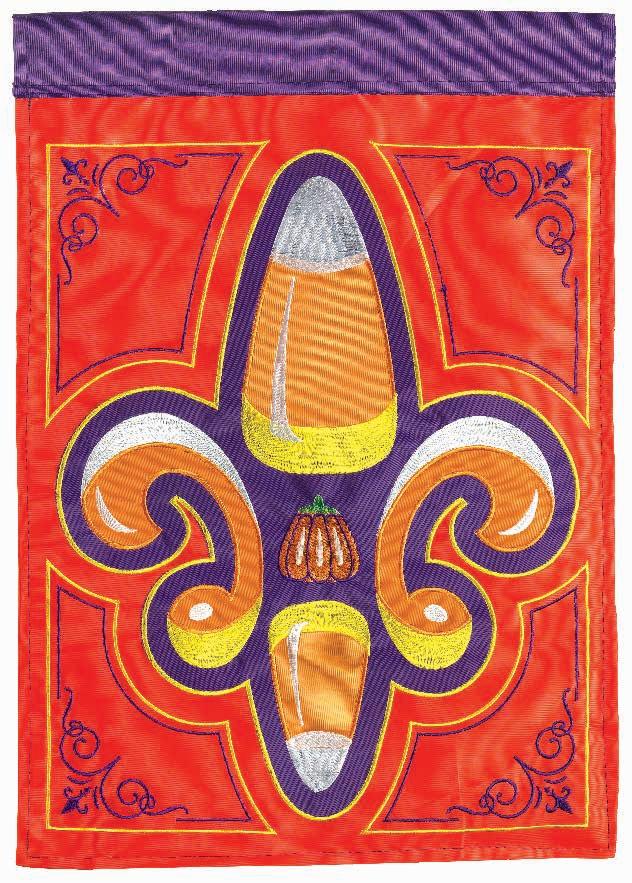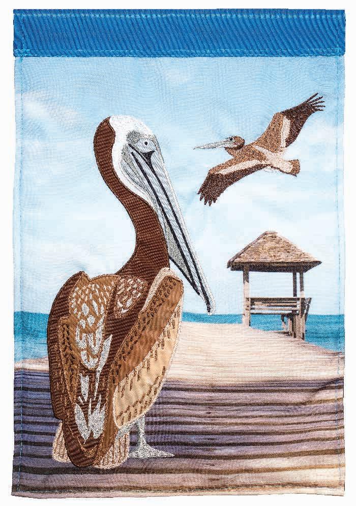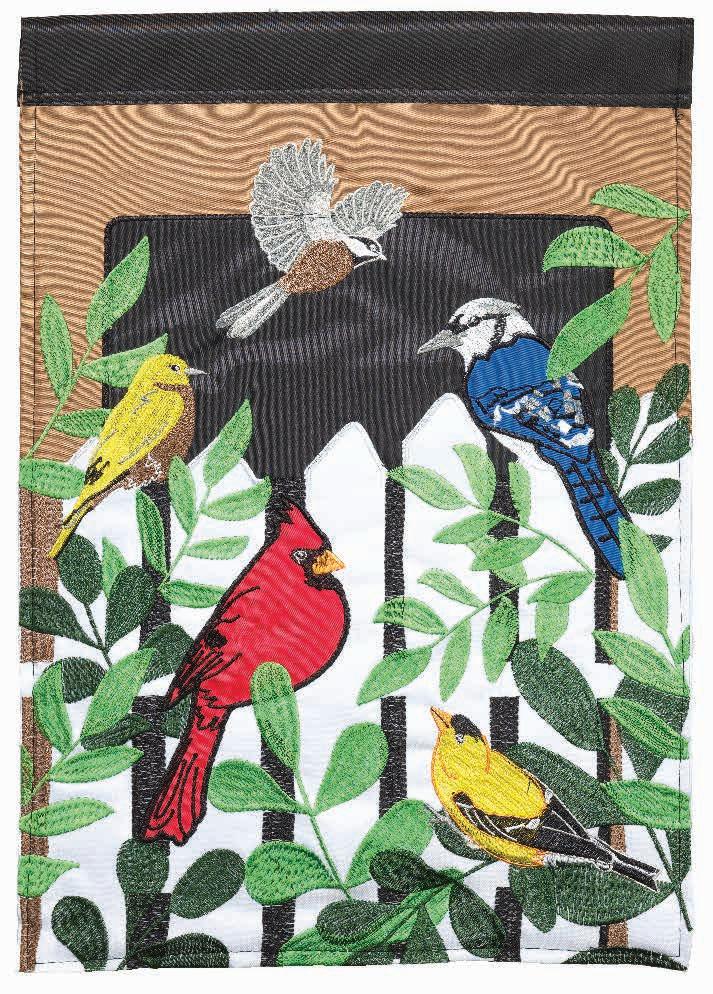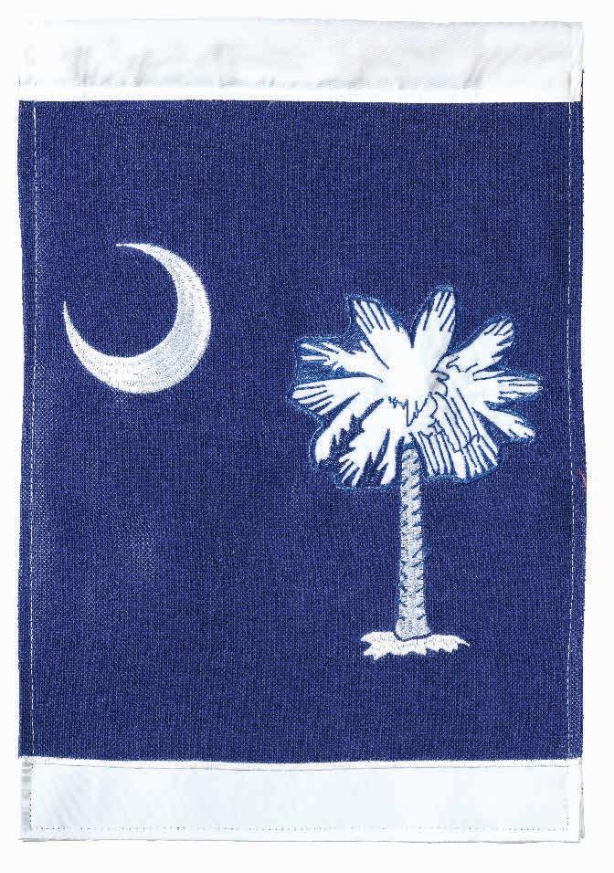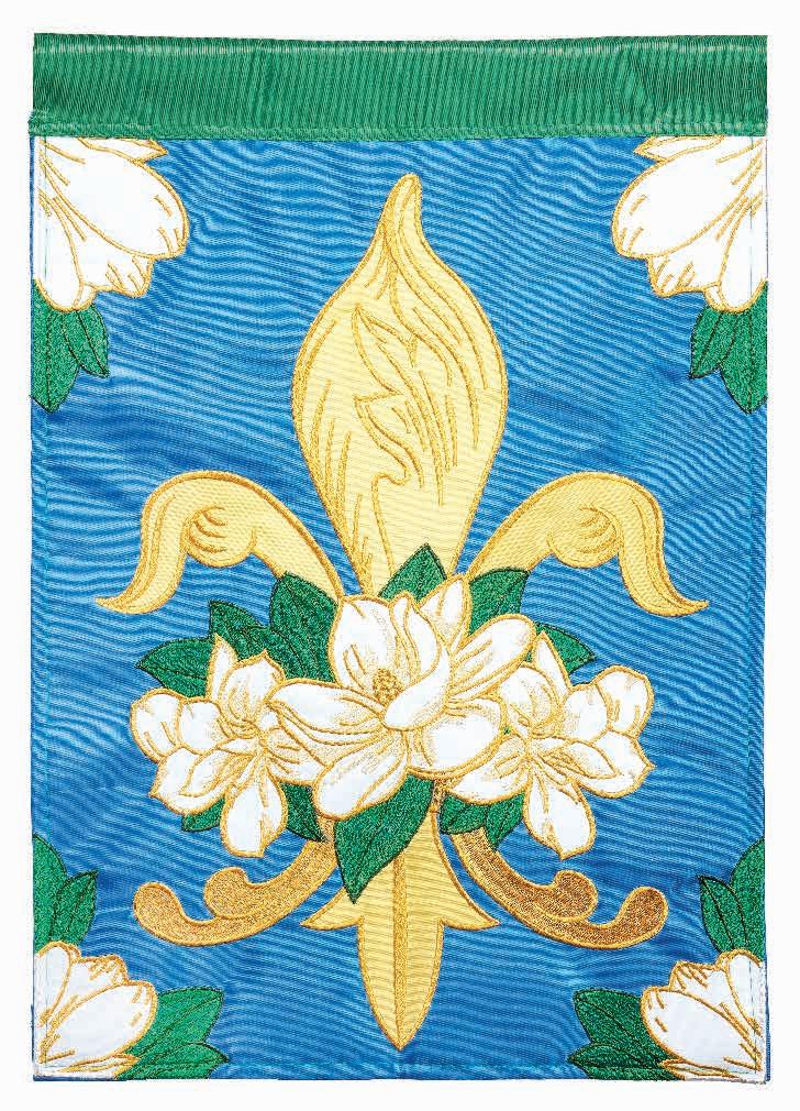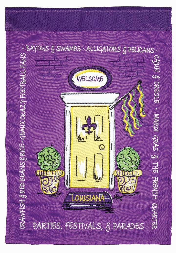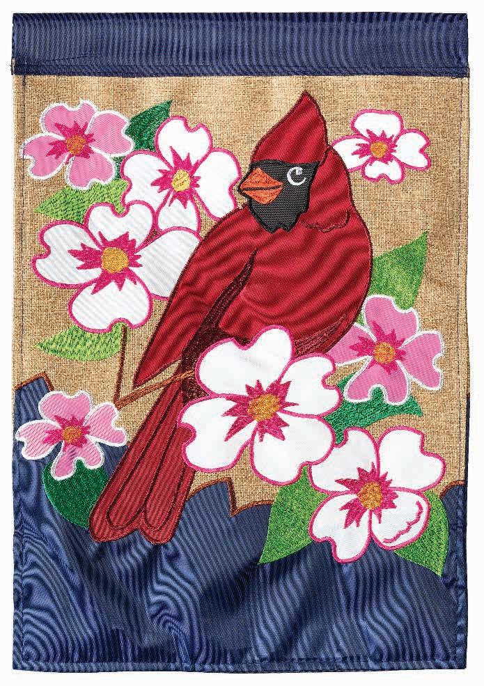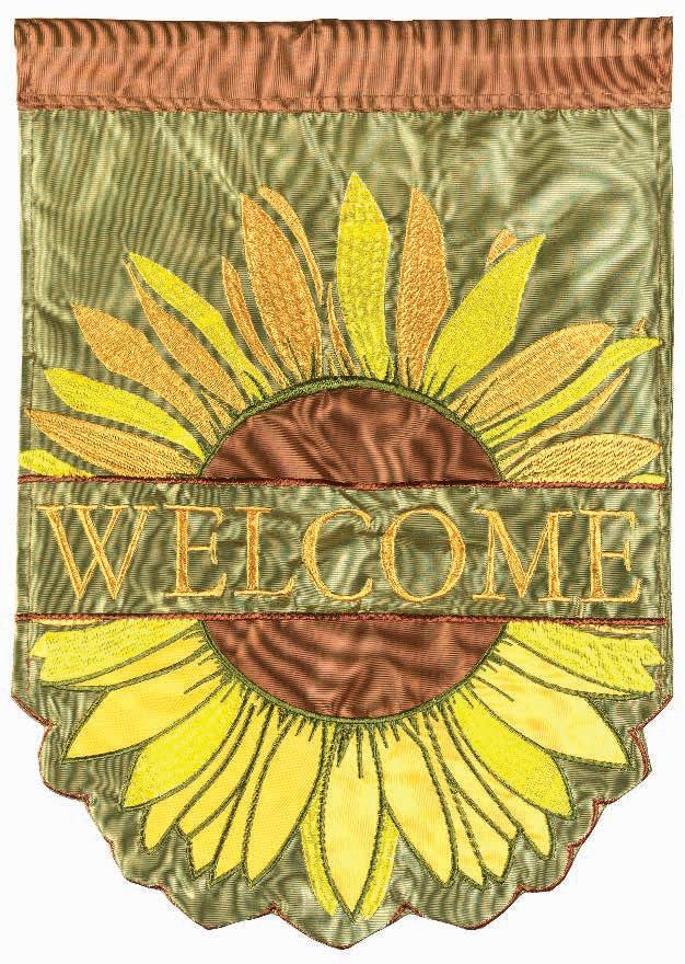 APPLIQUE FLAGS are decorated with a combination of fabric appliqués and exquisitely detailed embroidery. Made with a sturdy 360 denier polyester on both sides for a double thickness, these flags are heavier than most others on the market and will hold up longer. The fabric features either a satin-like smooth finish, or a burlap textured finish; many flags are a combination of both. Our customers have long been pleased with their beauty and quality.