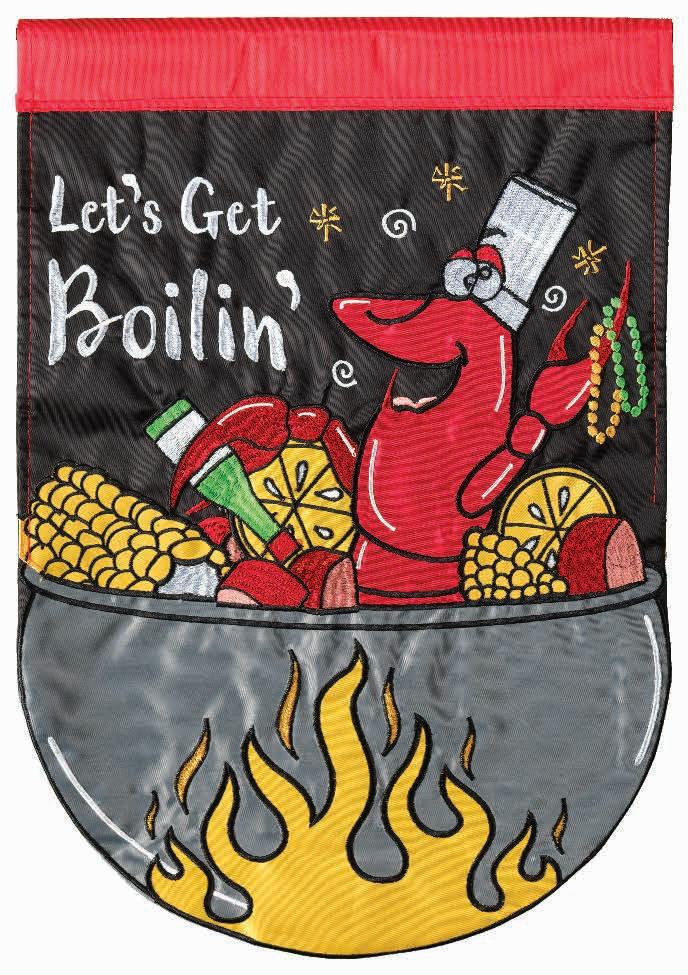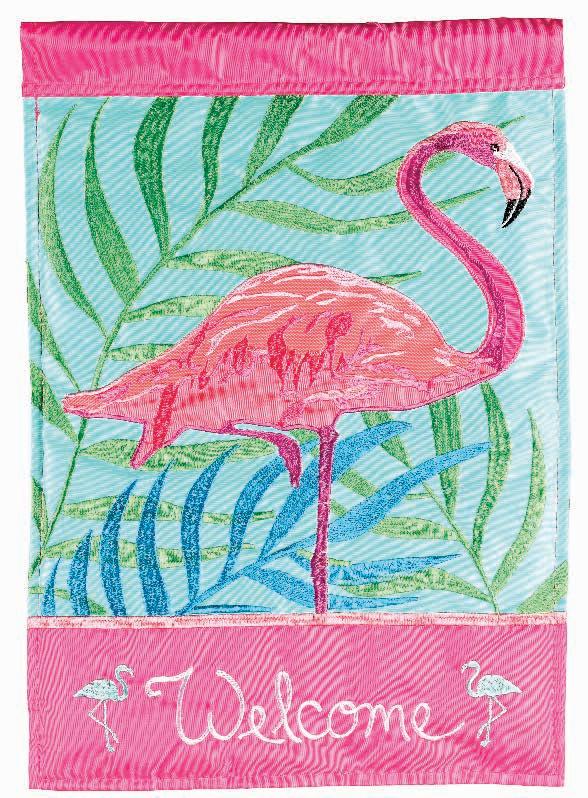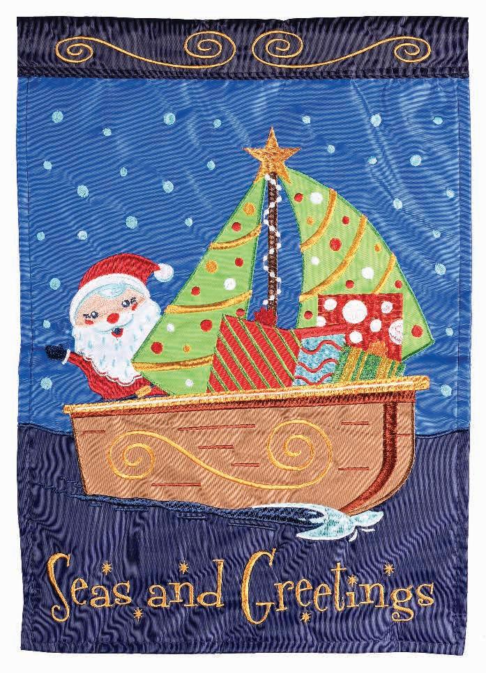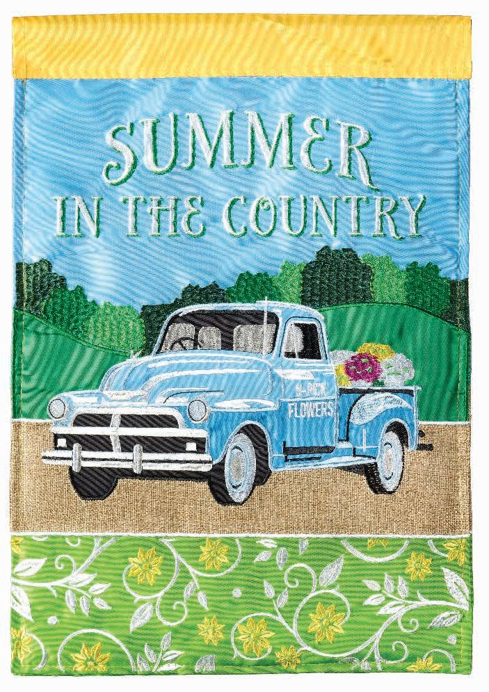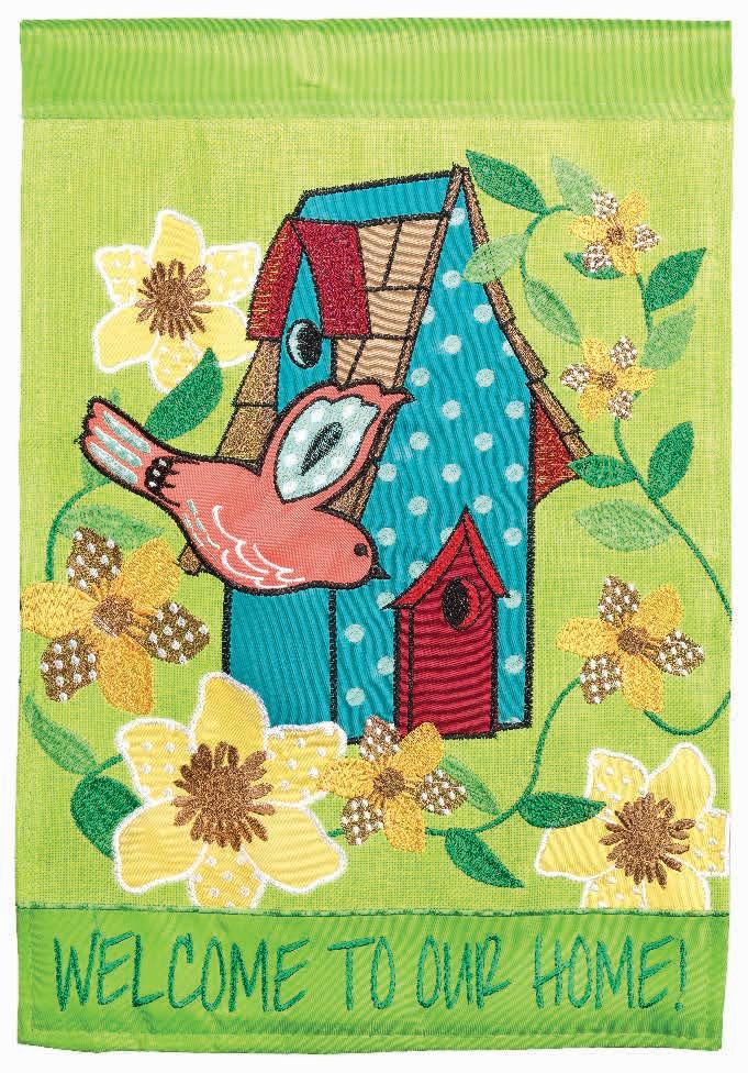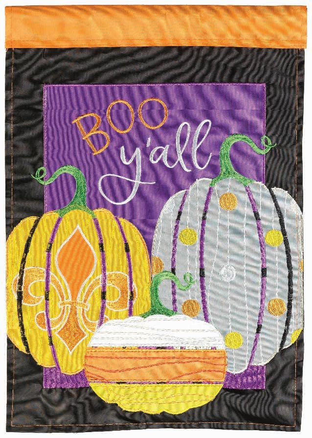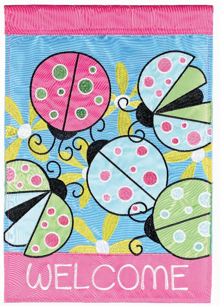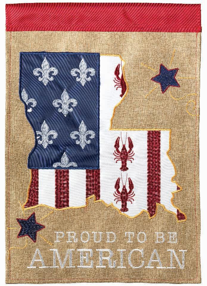APPLIQUE FLAGS are decorated with a combination of fabric appliqués and exquisitely detailed embroidery. Made with a sturdy 360 denier polyester on both sides for a double thickness, these flags are heavier than most others on the market and will hold up longer. The fabric features either a satin-like smooth finish, or a burlap textured finish; many flags are a combination of both. Our customers have long been pleased with their beauty and quality.