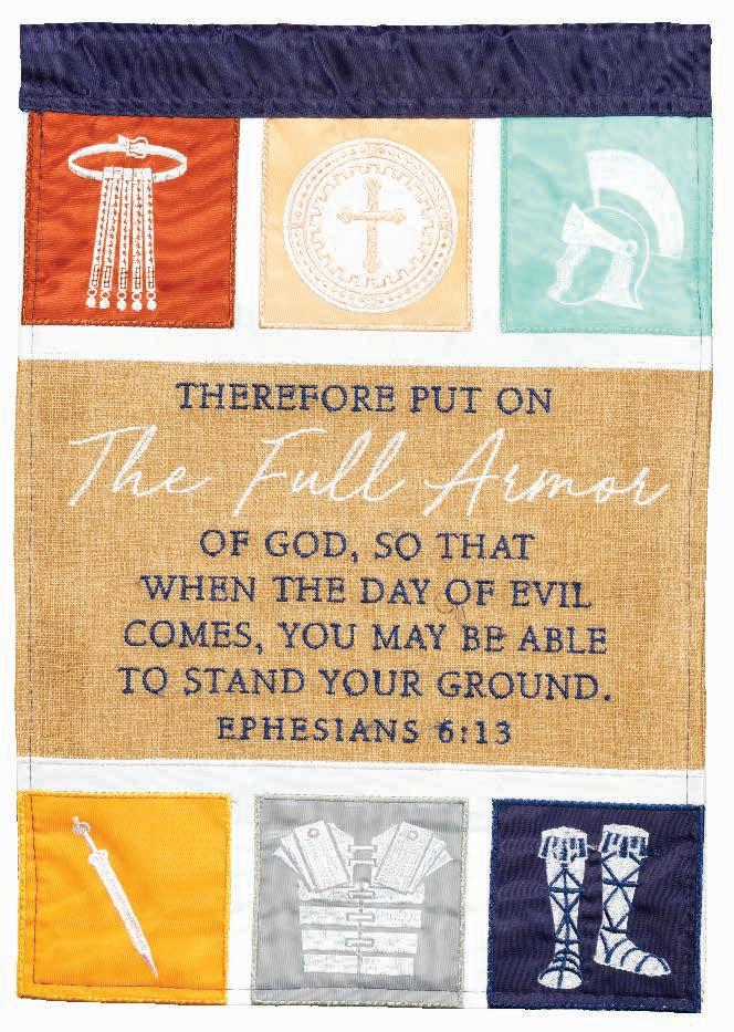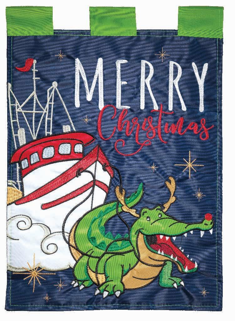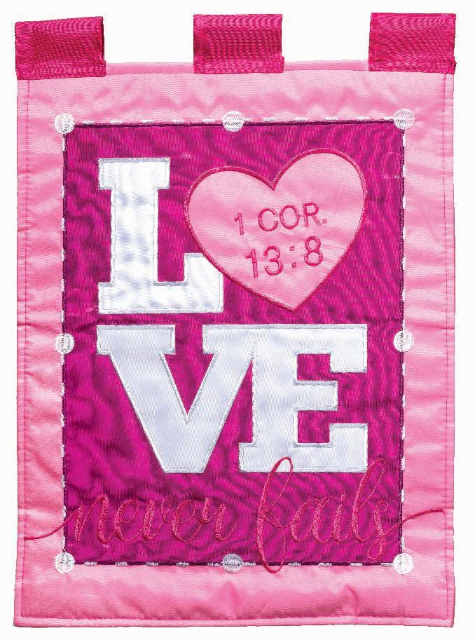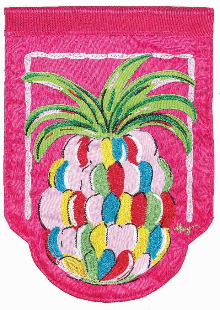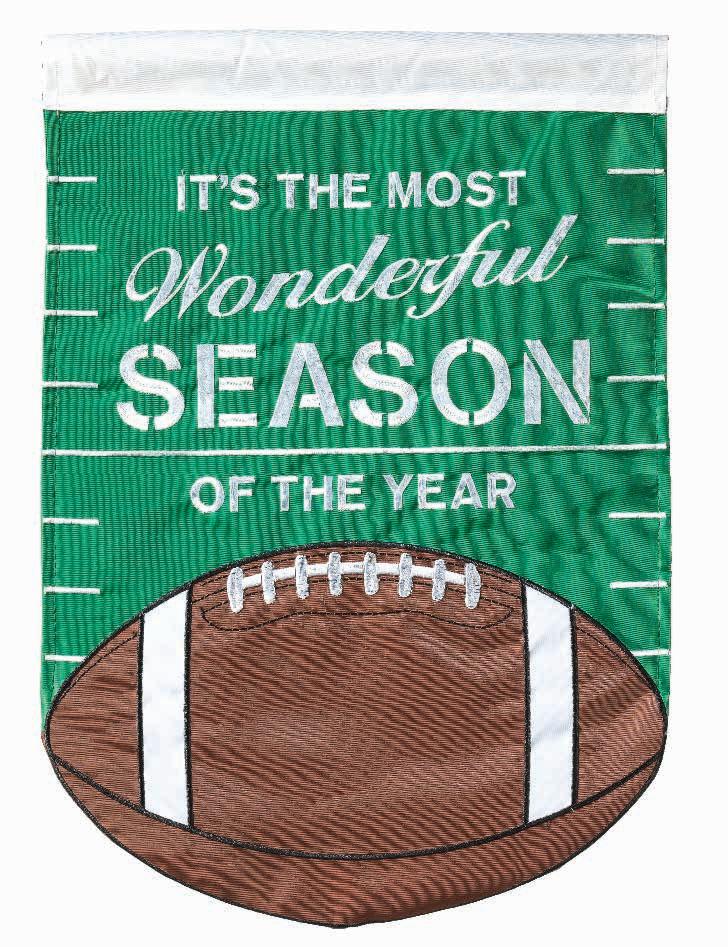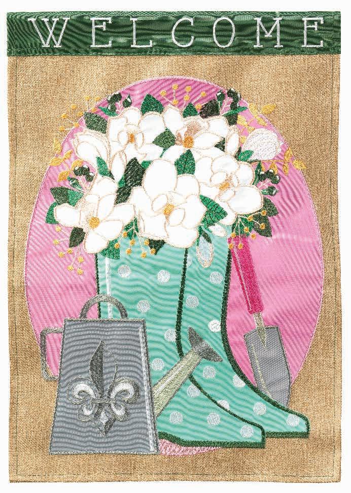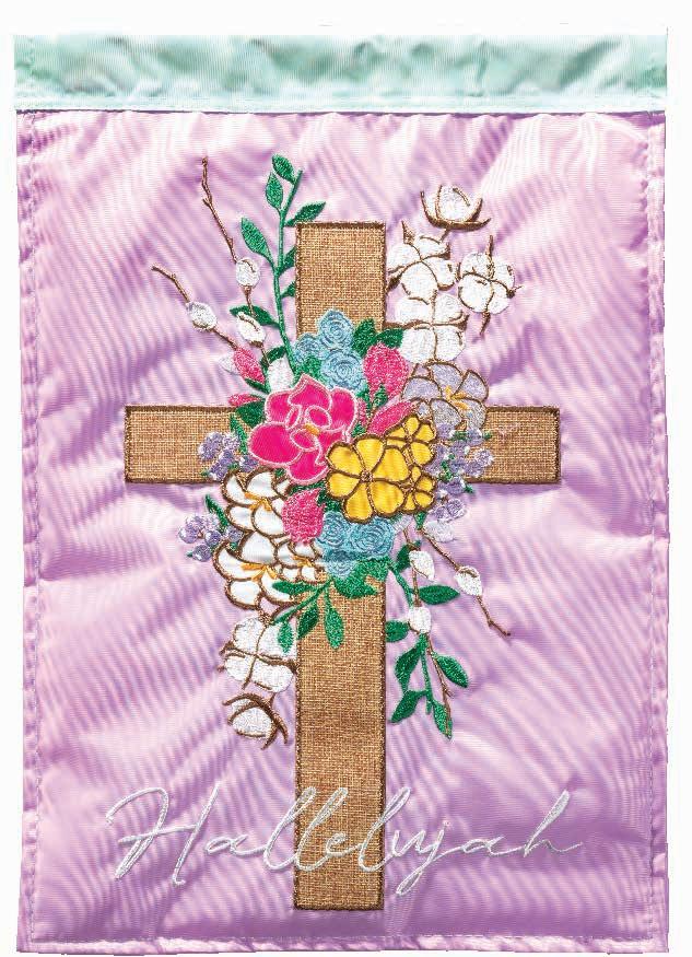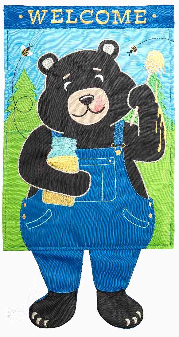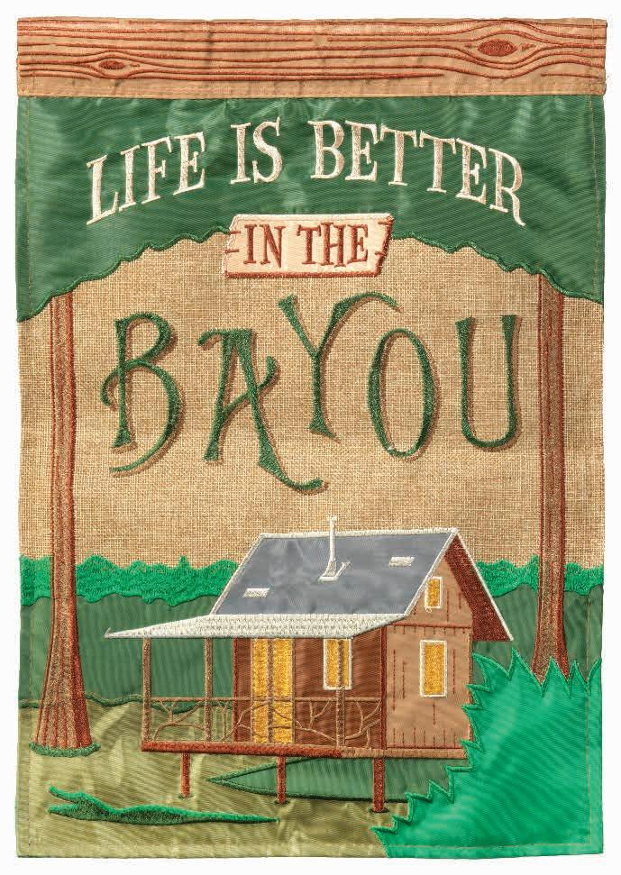 APPLIQUE FLAGS are decorated with a combination of fabric appliqués and exquisitely detailed embroidery. Made with a sturdy 360 denier polyester on both sides for a double thickness, these flags are heavier than most others on the market and will hold up longer. The fabric features either a satin-like smooth finish, or a burlap textured finish; many flags are a combination of both. Our customers have long been pleased with their beauty and quality.