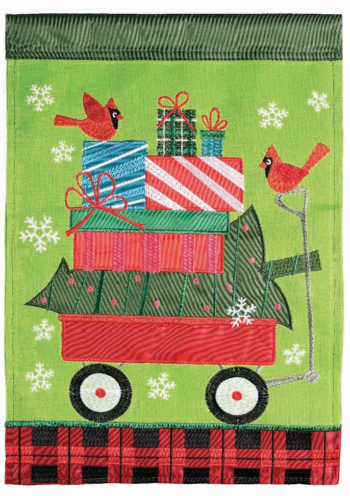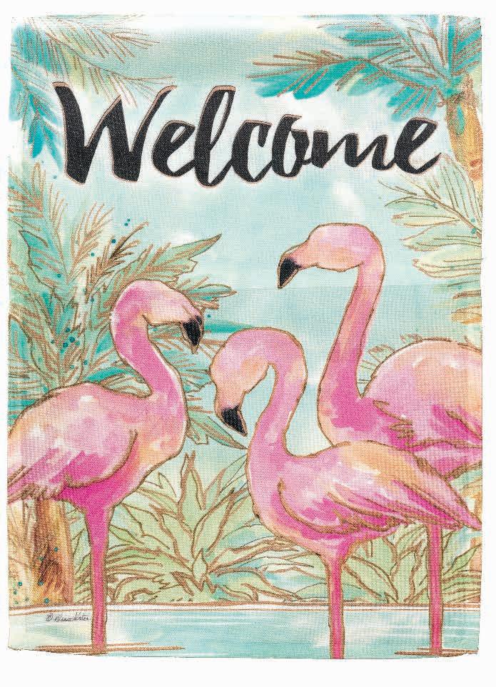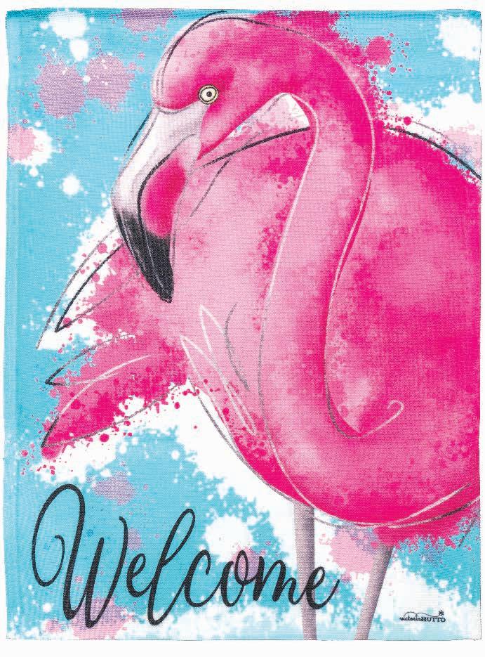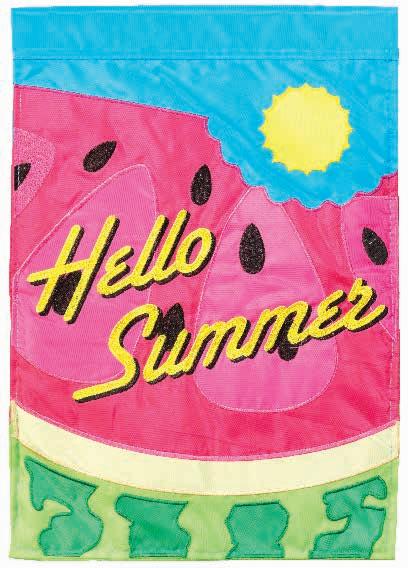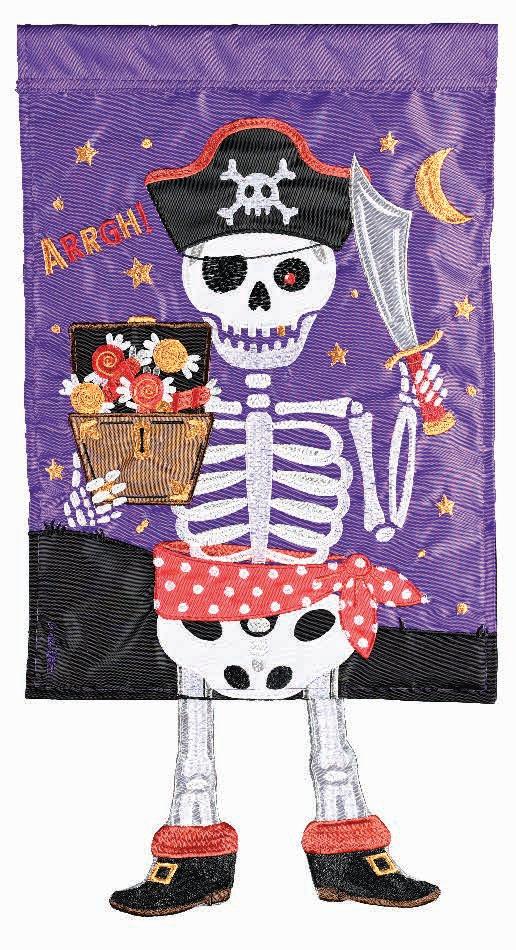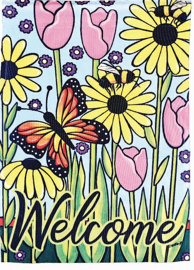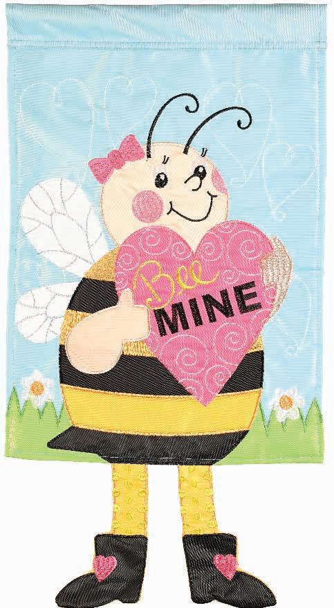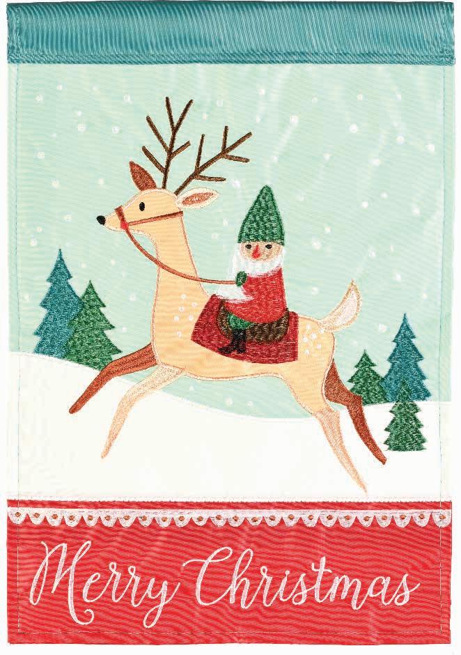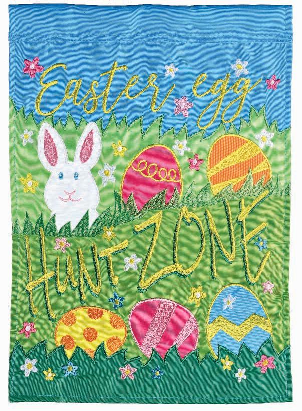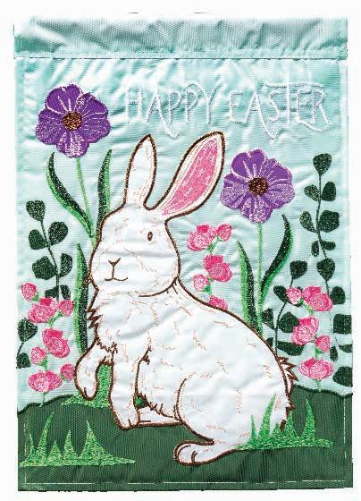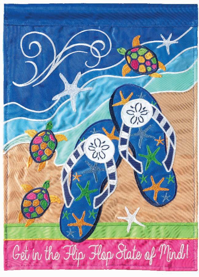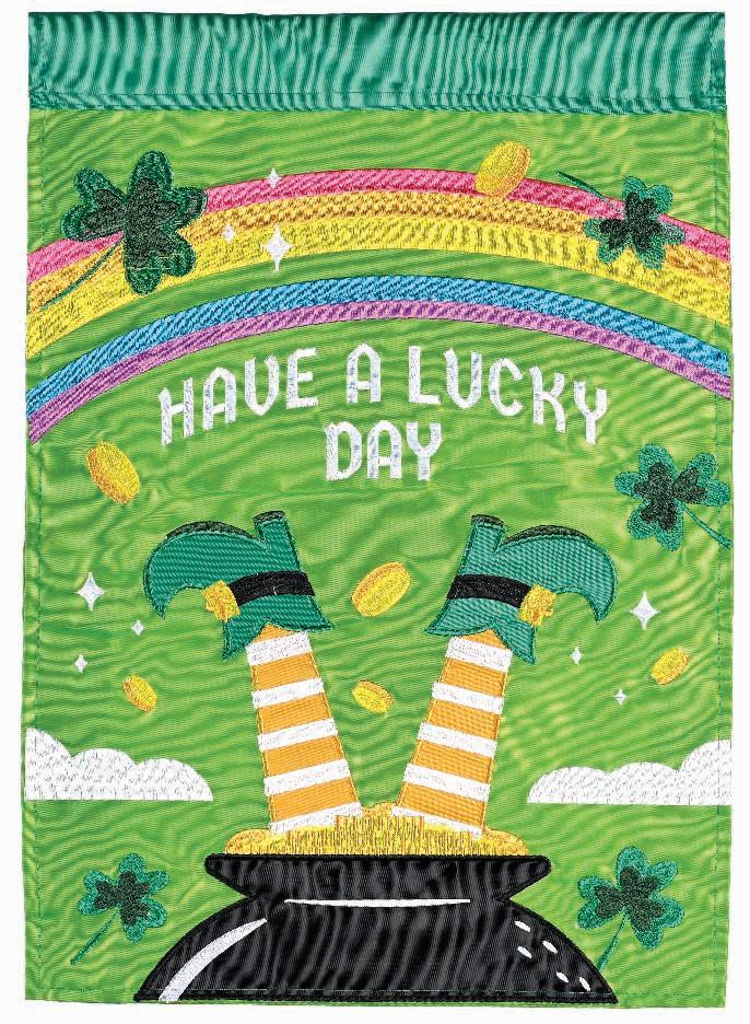 DOUBLE APPLIQUE CRAZY LEGS FLAGS Leg dangles add extra fun to the whimsical characters on these seasonal garden flags! Dangles are 6”long on a 13”x18”H flag, and appear the same on both sides. Available in Garden size only.