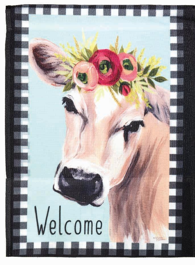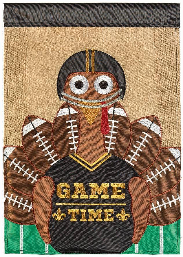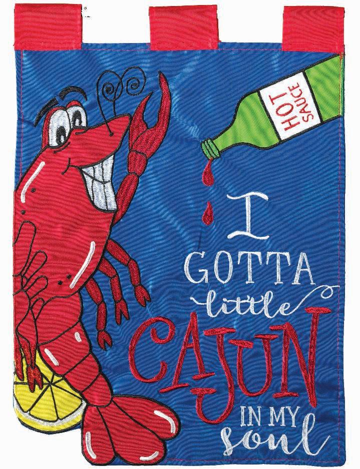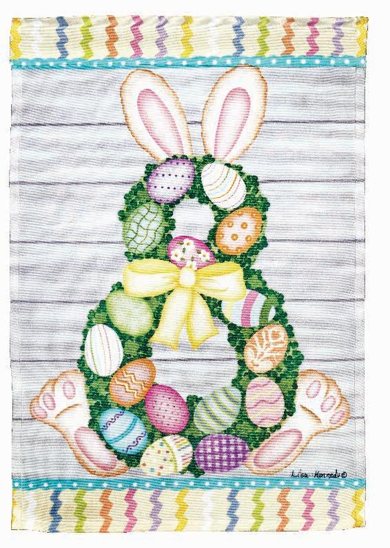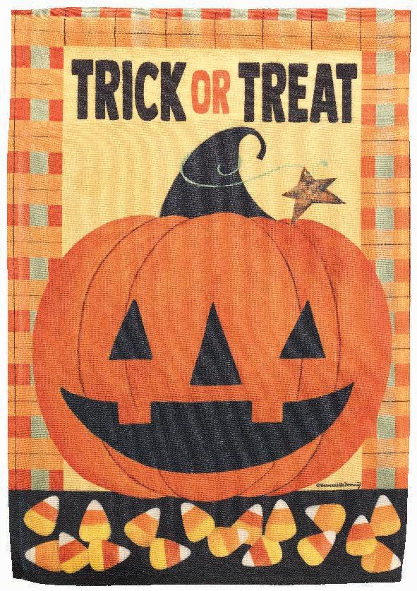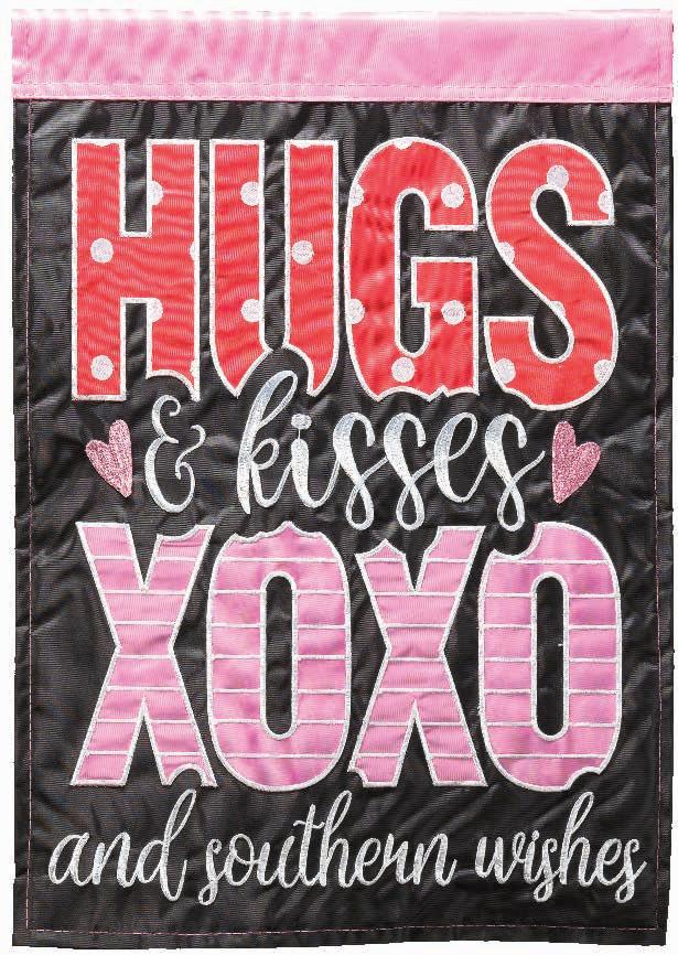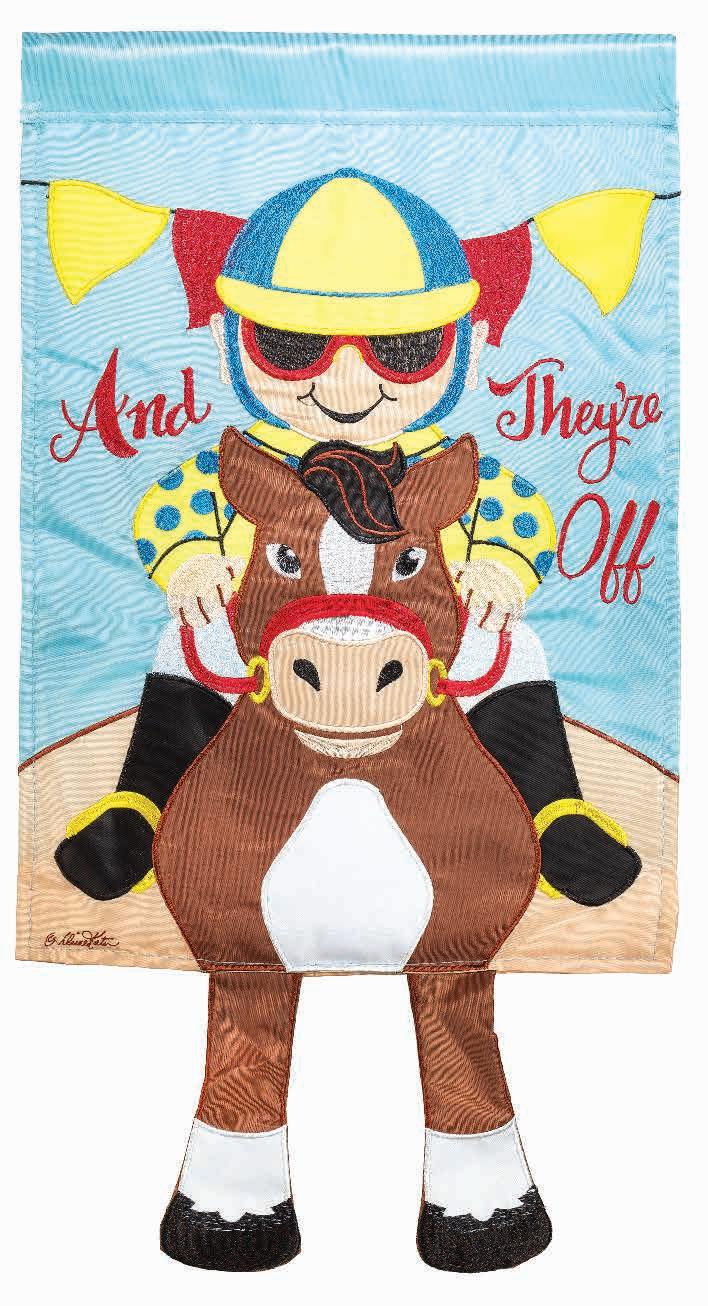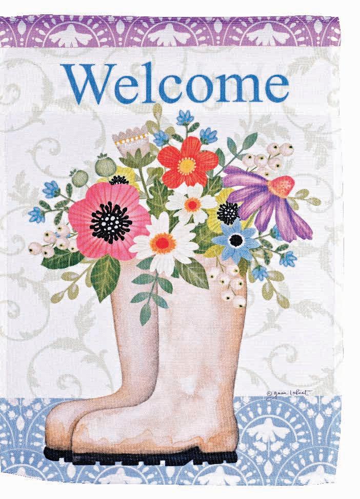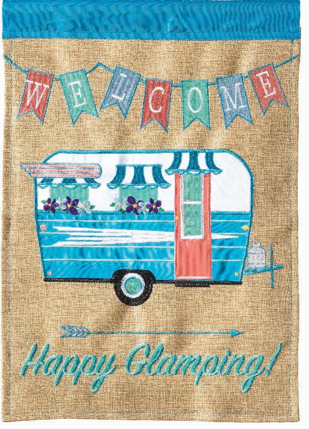 DOUBLE APPLIQUE CRAZY LEGS FLAGS Leg dangles add extra fun to the whimsical characters on these seasonal garden flags! Dangles are 6”long on a 13”x18”H flag, and appear the same on both sides. Available in Garden size only.