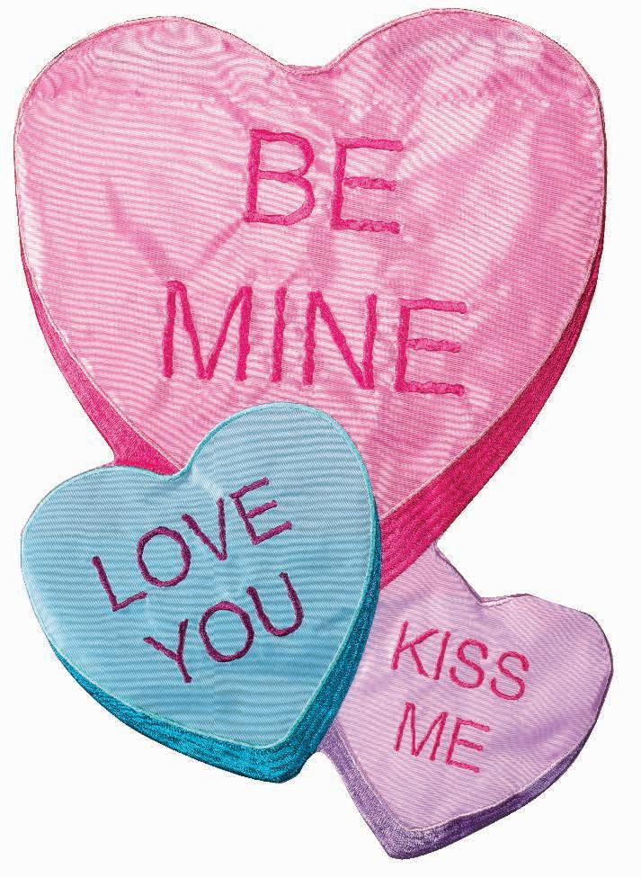 CANDY HEARTS BURLAP DOUBLE APPLIQUE