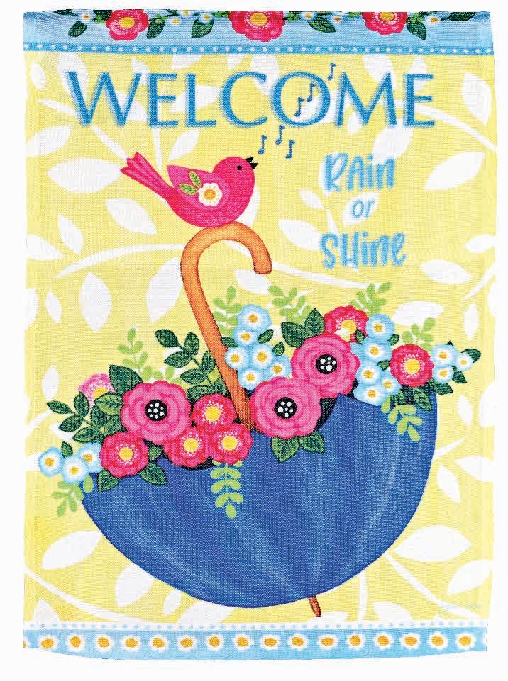 ALL MAGNOLIA GARDEN FLAGS Have the same design on both the front and back sides, increasing your display options. Flags are weather-resistant and will not be damaged by normal rain and wind conditions. If placed in shade or semi shade, flag will retain its vivid colors for years.