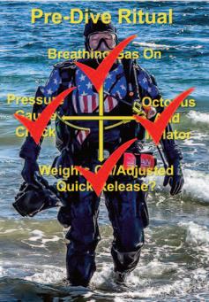 A checklist combined with a consistent pre-dive ritual may reduce the likelihood of something vital being missing and will, hopefully, enhance the diving experience. A good checklist and consistent pre-dive ritual can be the best start of a good dive!