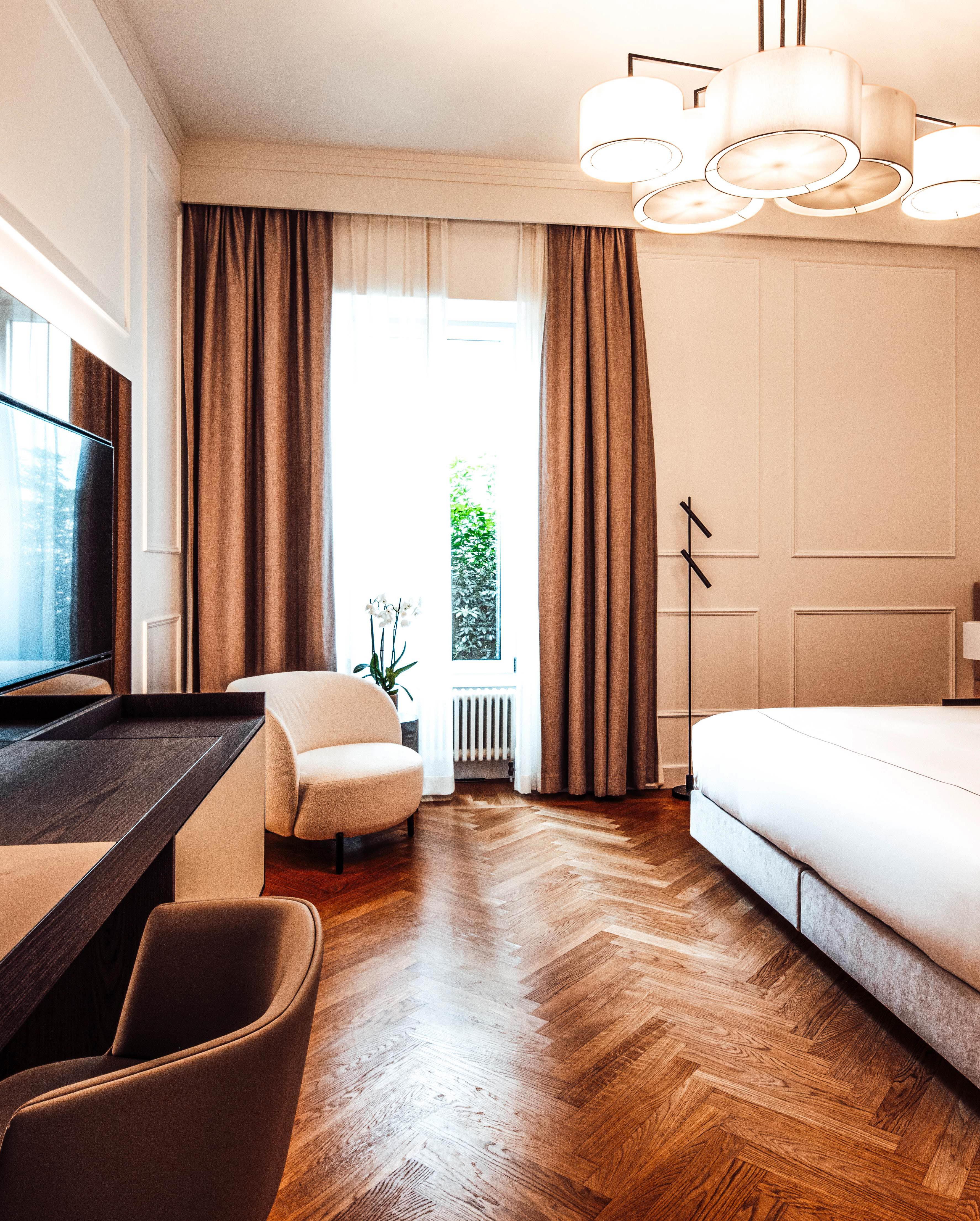 La Residence, edificio storico originario di Clinique La Prairie, richiama il fascino opulento dei grandi hotel di inizio XX secolo.