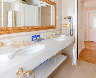 富丽堂皇的沙皇套房坐落在城堡楼的一层,拥有一个美轮美奂的露台,俯瞰湖泊和阿尔卑斯