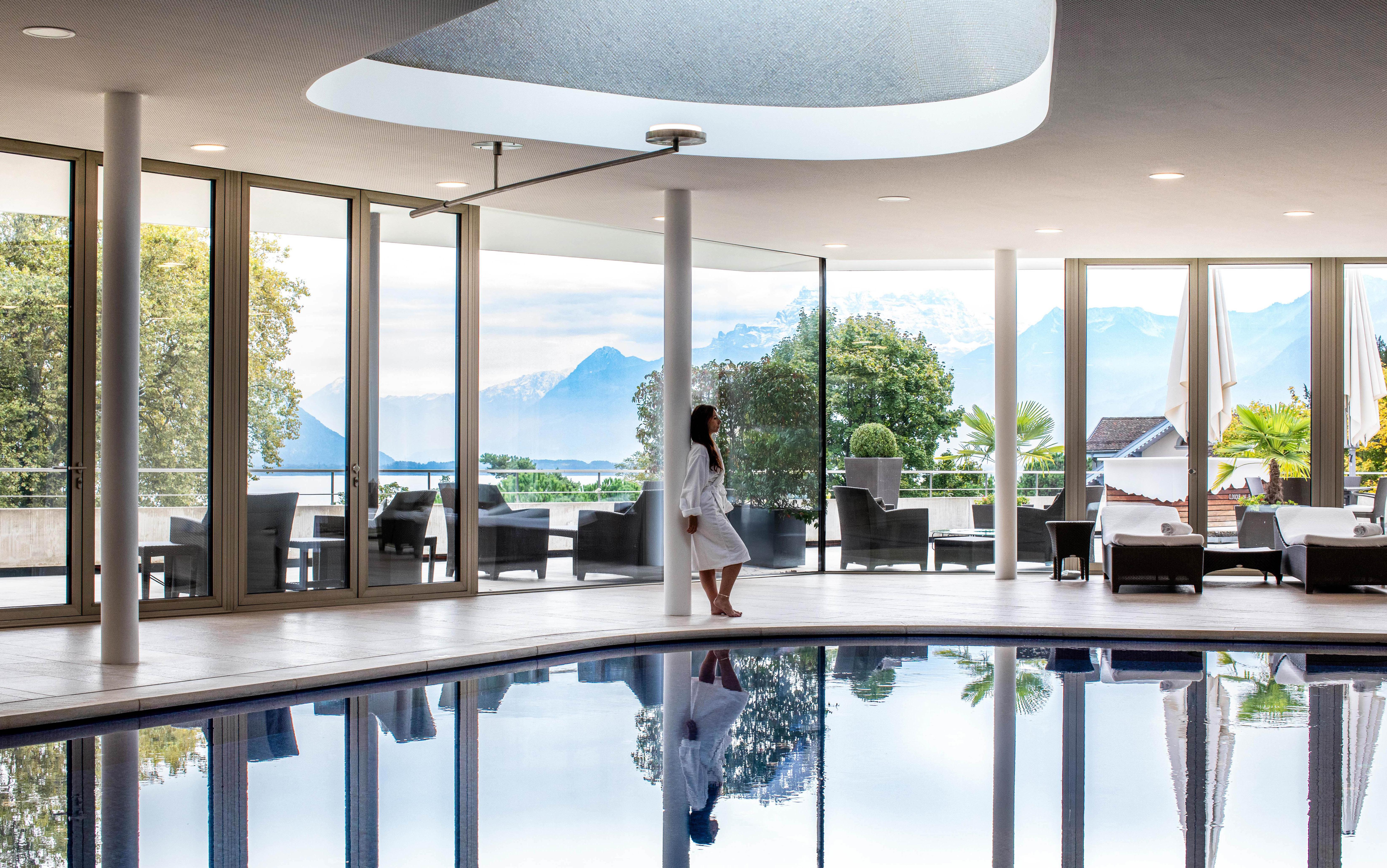 Todo ello ubicado en un entorno de absoluta serenidad: edificios luminosos, amplios y elegantes a orillas del Lago de Ginebra, con los Alpes al fondo y el cálido microclima de Montreux que contribuye a una experiencia de ensueño. Le invitamos a relajarse, dejarse cuidar y permitir que emerja una nueva versión de usted: renovado, revitalizado y listo para afrontar el mundo.