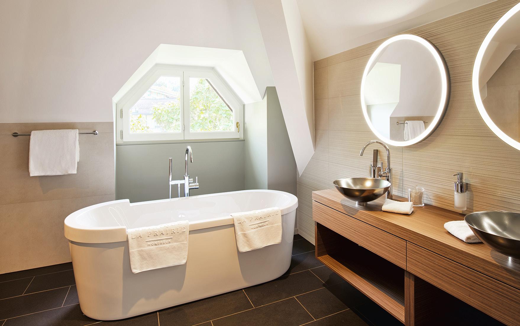 Featuring modern architecture, the Medical Center reveals contemporary glass facades, combining play of light with magical reflections of the lake and mountains. This building has 20 post-op rooms, 2 Junior Suites and 4 suites situated on the clinic’s top floor. CHÂTEAU & MEDICAL CENTER
