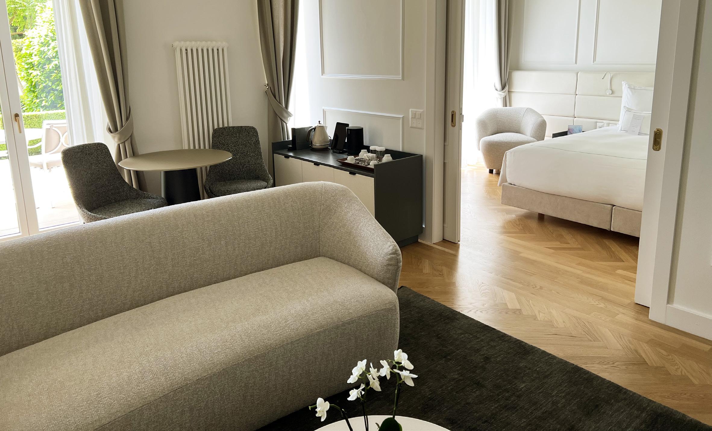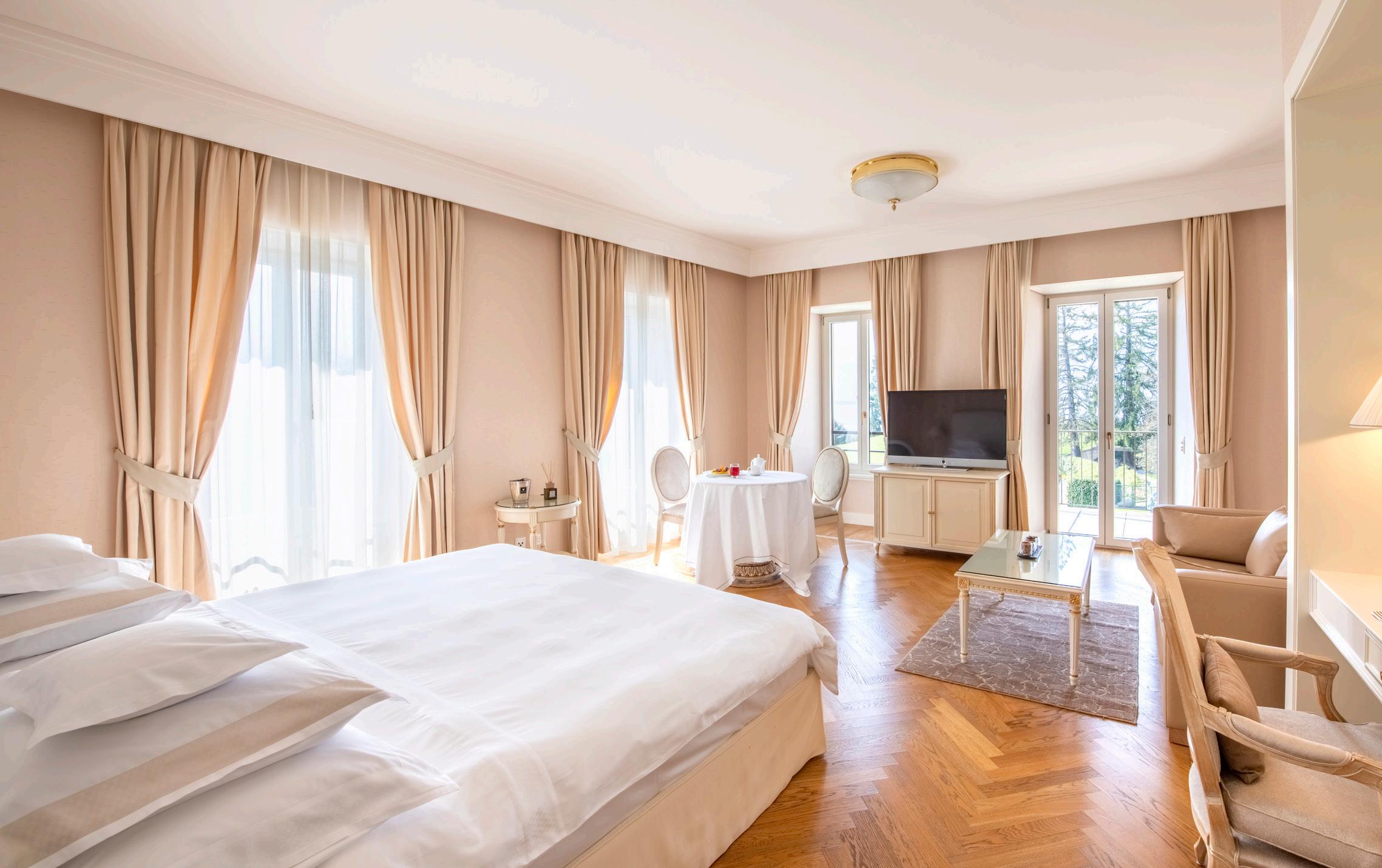 Spectacular views of the lake and gardens may be admired from the balcony or terrace of the Junior Suites. Bathed in sunlight and offering very comfortable space, the Junior Suites are a haven to rest in.