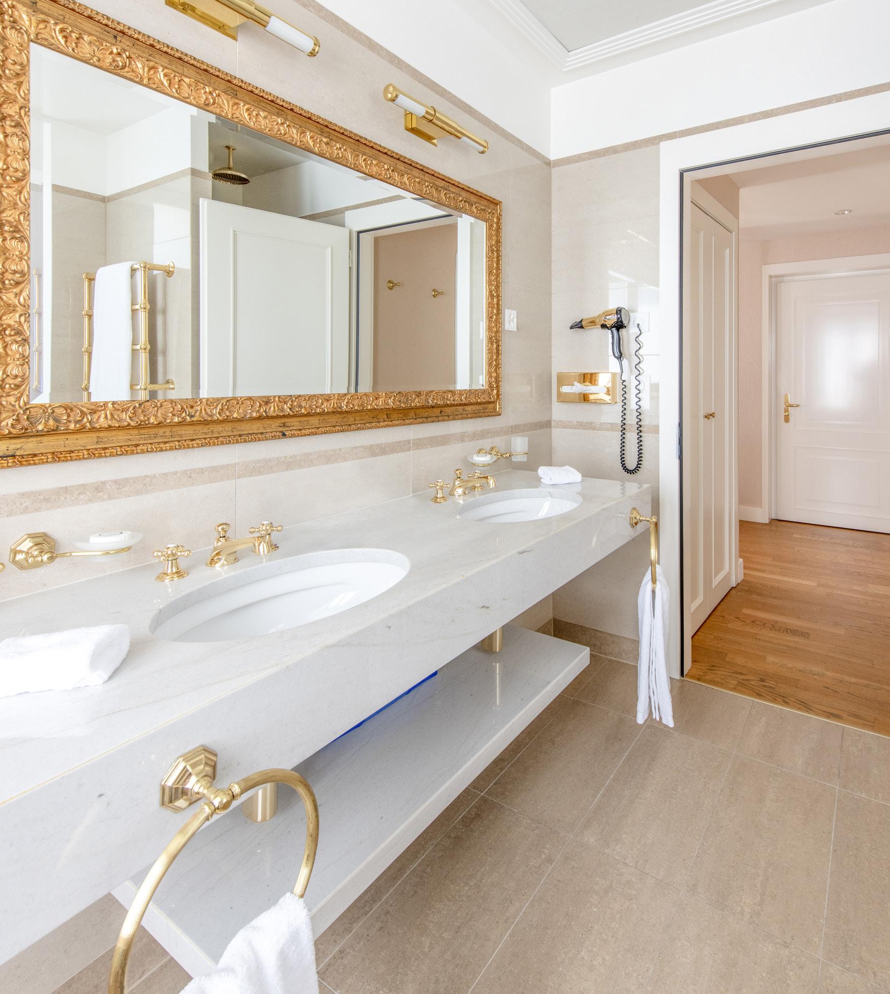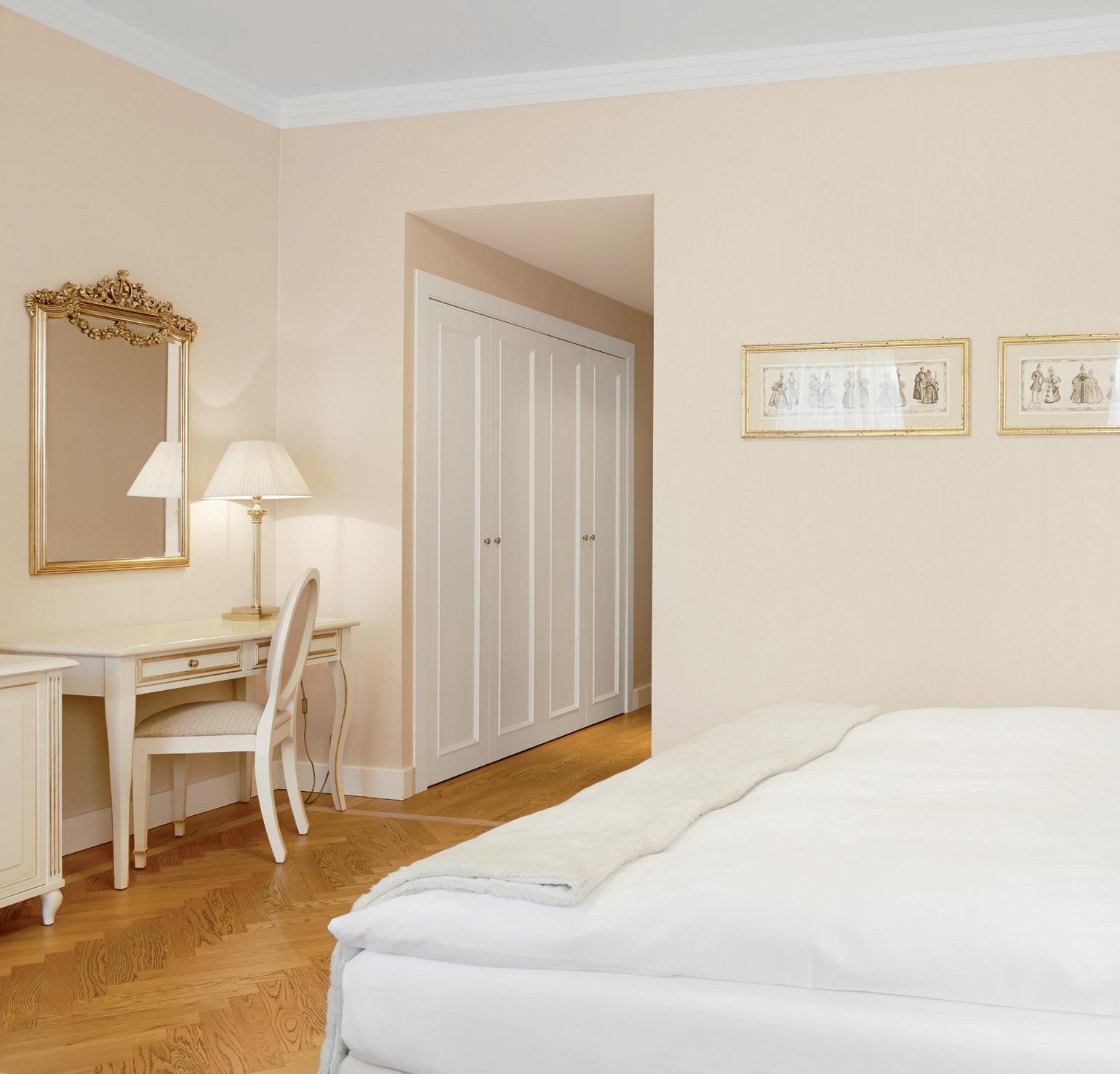 Antique furniture carved and decorated with gold leaf enhance the prestige of the setting. These spacious rooms offer a superb view of the lake