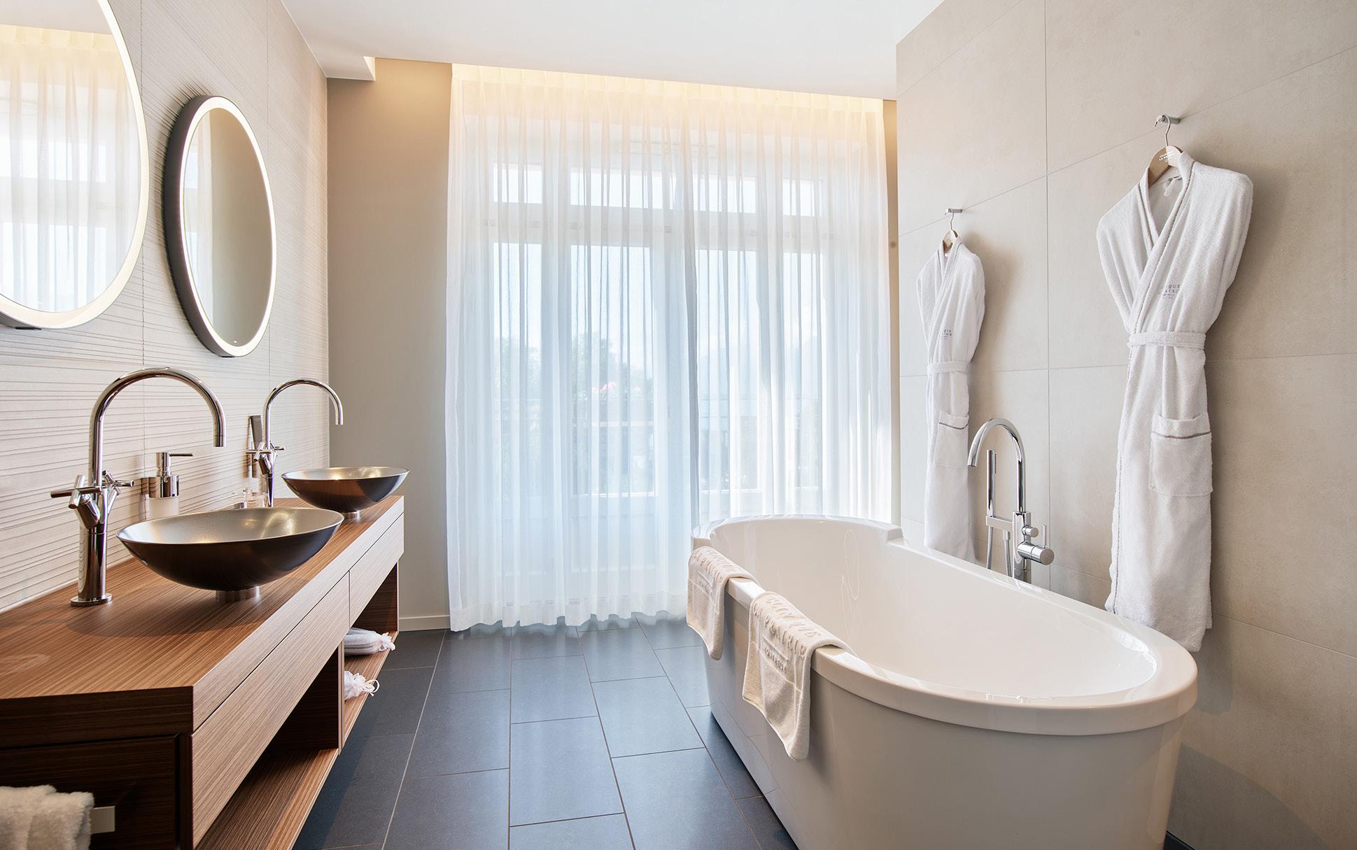 On the top floor – the sixth – in a secluded part of the clinic where tranquility reigns, the Imperial Suite’s special features include a unique, private terrace with a panoramic view over the lake and the port of Clarens. A private elevator takes guests directly to the suite.