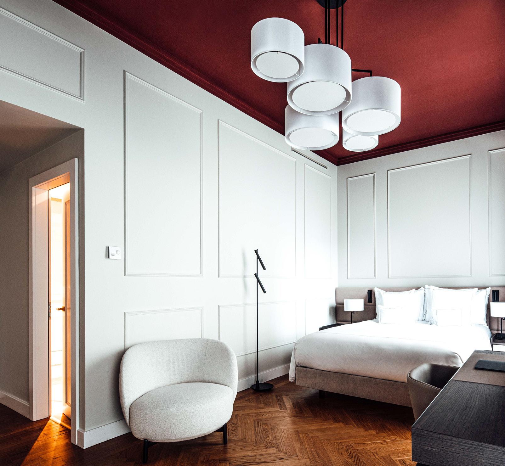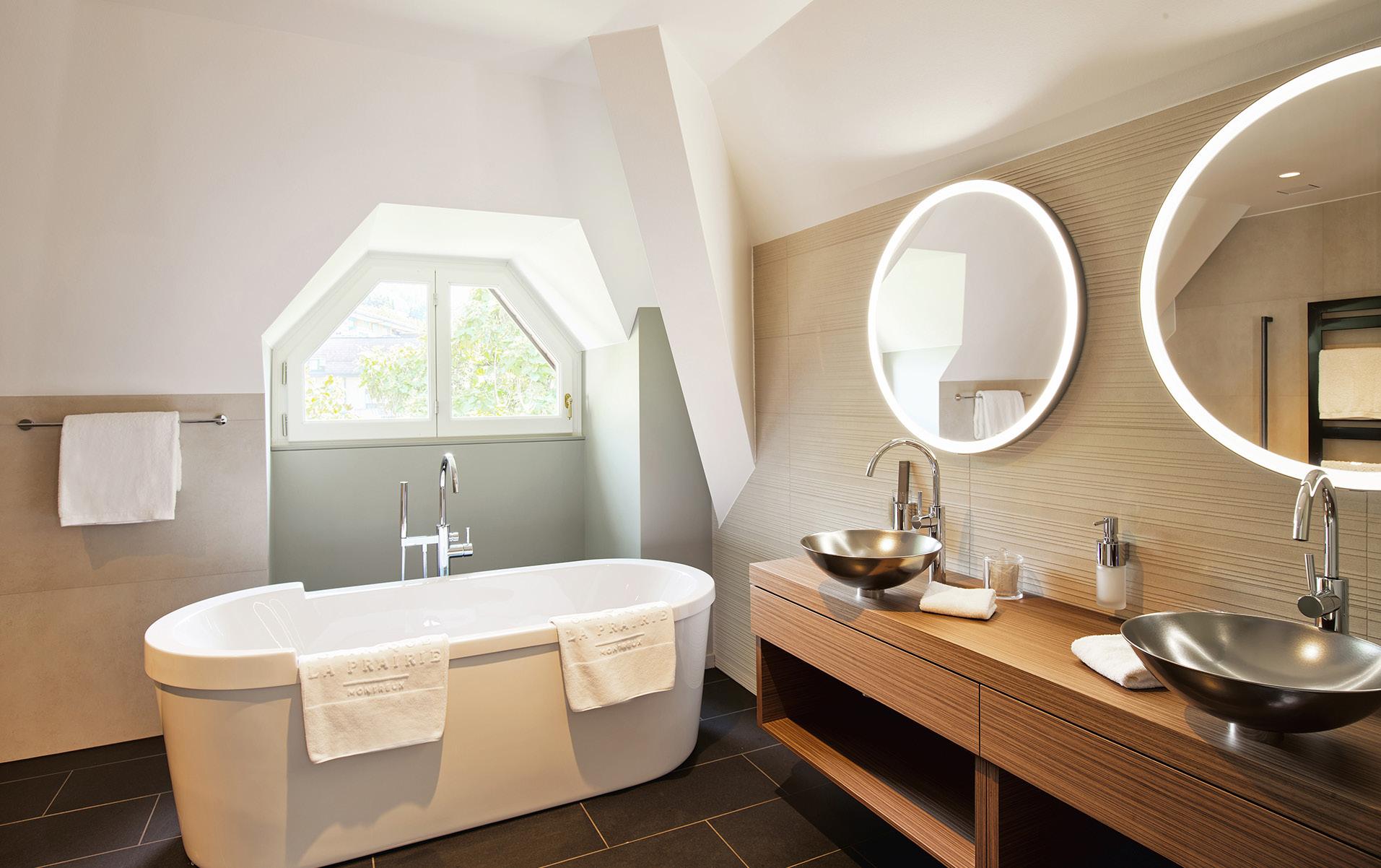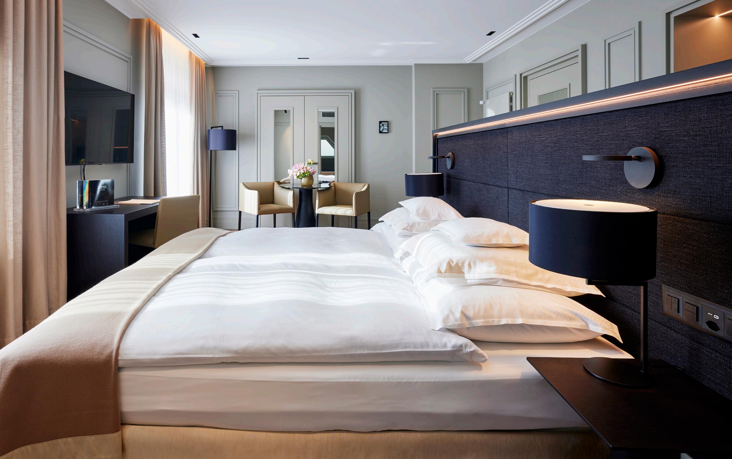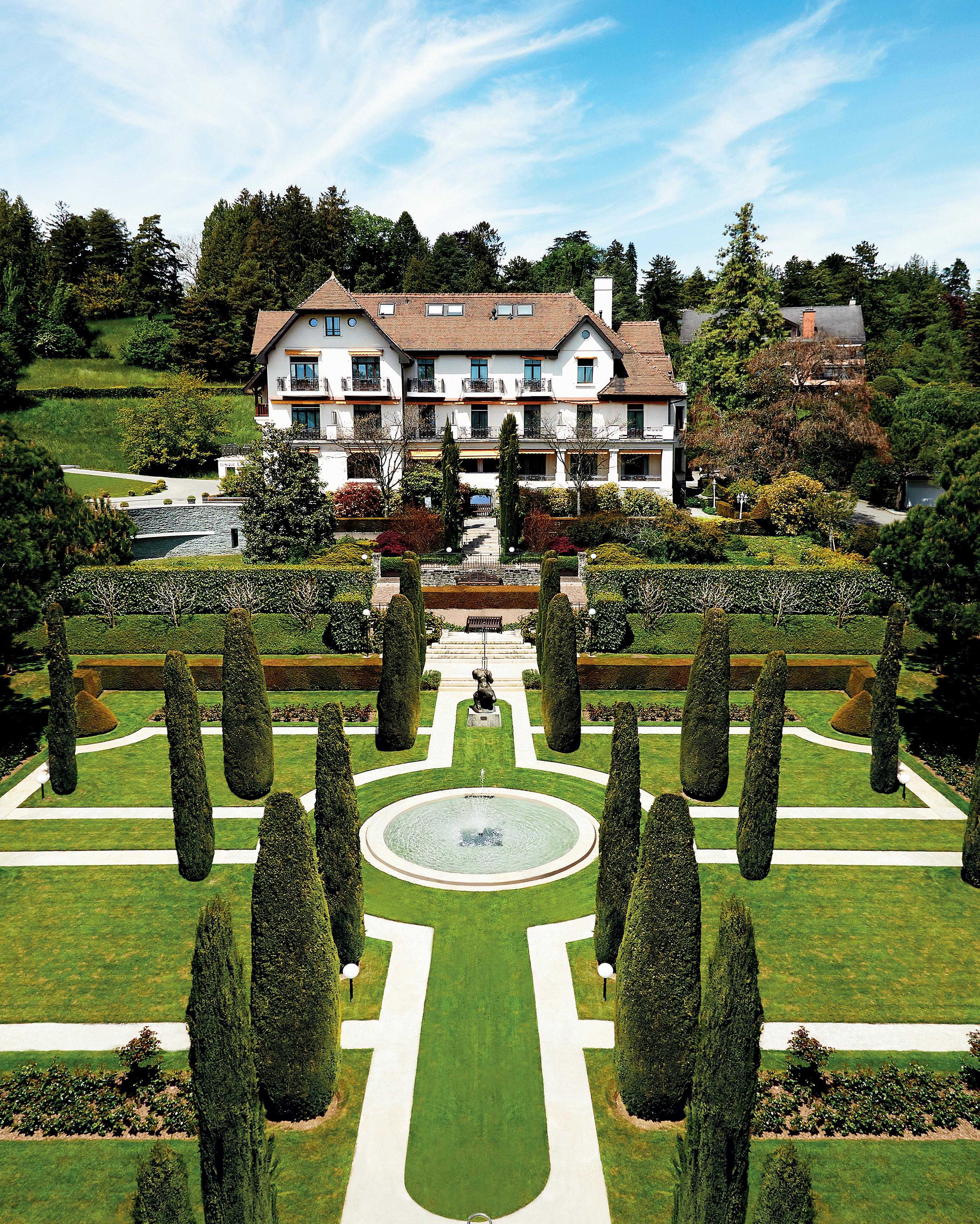 These rooms are very spacious, incorporating a lounge area. Ideally located in the wings of the Château, the deluxe rooms have many windows opening onto the garden, lake and Alps for a perfect view all day long.