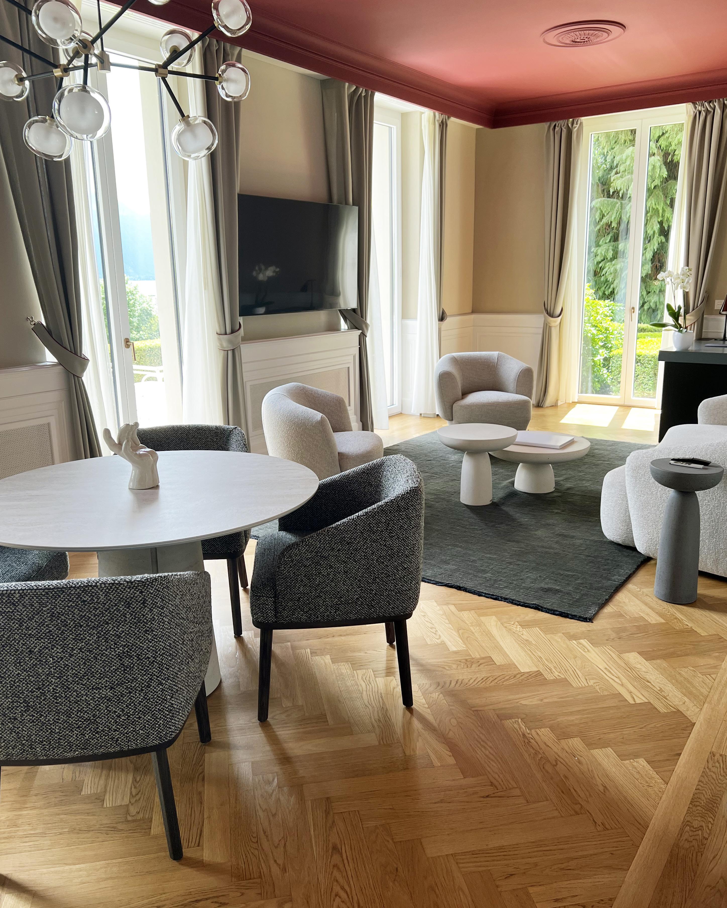 With an elegant and modern design, this room offers a spacious lounge. The balcony offers a nice view of the lake, French garden and mountains.