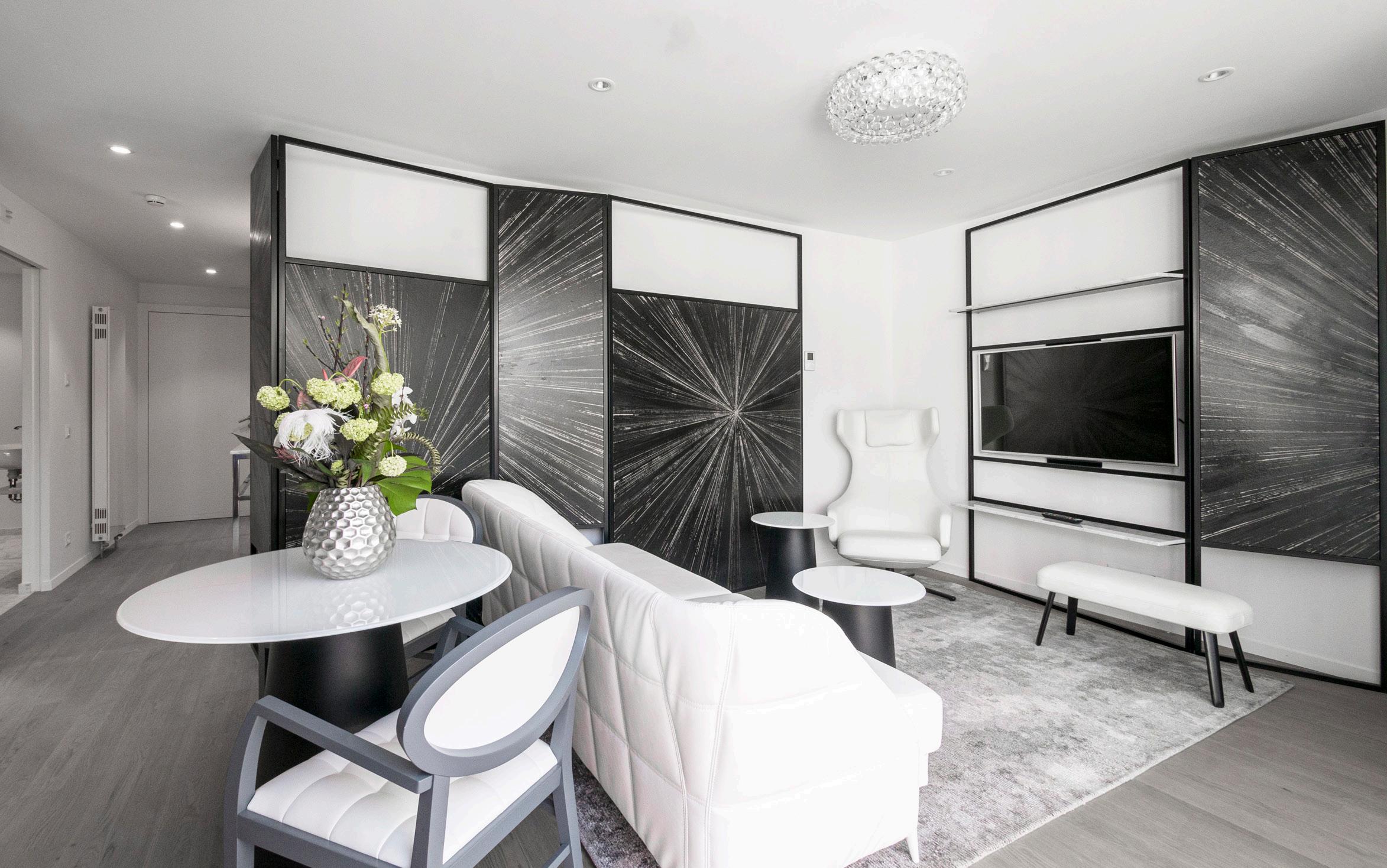 Dominating the clinic’s french garden with a beautiful view, the Prairie Suite has a terrace conducive to relaxation. The spacious and modern living room also has a dining area.