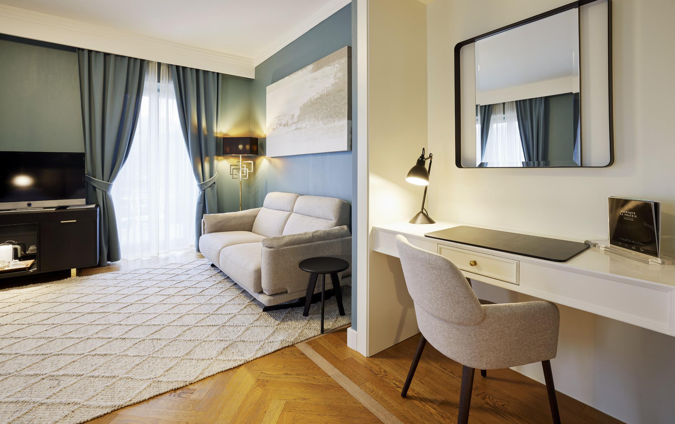 Set on higher ground within Clinique La Prairie’s domain and overlooking the lake, the Château is the clinic’s main hotel building. The 3 floors of the Château offer 23 luxury rooms and suites. Most rooms have a terrace or balcony with views of the lake and mountains. Connecting rooms are available.