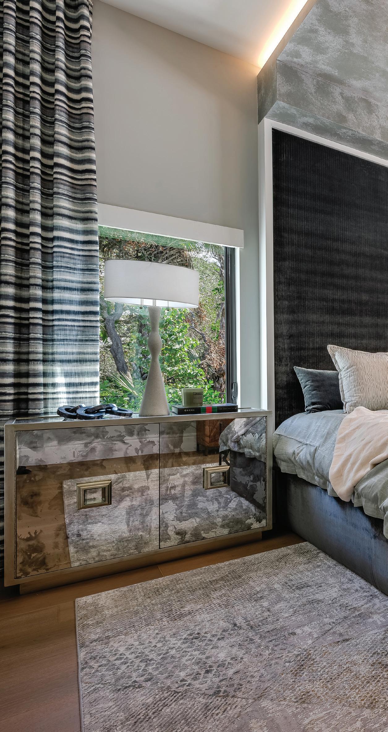 ABOVE: Adjacent to the bed, an L-shaped sectional sofa offers ample seating for guests to relax, converse, read, or enjoy a quiet moment.