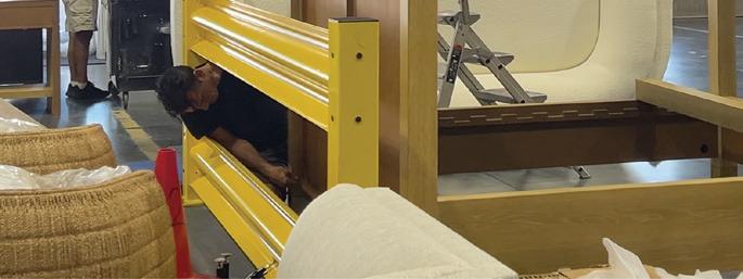 Behind the scenes, our 175,000 sq. ft. warehouse is far more than a hub for logistics—it’s the engine room of our promise. Picture a choreographed ballet of precision: every sofa, chair, and table that enters is unboxed, inspected, and fully assembled to ensure every part is present and every detail is correct. Only then is it carefully evaluated against our standards and, if needed, perfected by master finishers on site. From tightening a seam to restaining a surface, these refinements guarantee that each piece leaves in flawless condition, prepared to shine in a client’s home. It’s logistics elevated to an art form— where efficiency meets craftsmanship, and scale never compromises soul. Our warehouse doesn’t just move furniture; it safeguards the integrity of design.