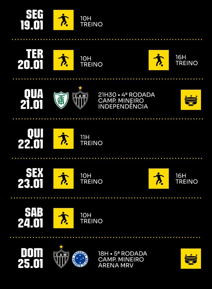 • O Atlético enfrenta o América, na Arena MRV, pela 4ª rodada do Campeonato Mineiro. O Galo vem de empate em 0 a 0 com o Tombense, na Arena MRV. Com três pontos, a equipe alvinegra está em 3º lugar no Grupo A.