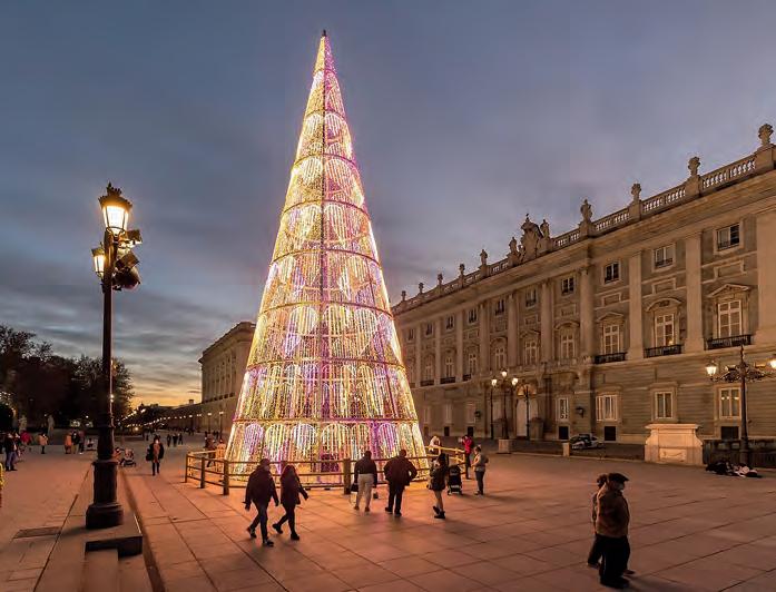 gran árbol iluminado. Entre los muchos árboles que podrán visitarse, estarán los de El Bosque de los Deseos, en la Real Casa de Correos, donde los visitantes podrán escribir sus deseos en bolas de papel y colgarlas en las ramas de los abetos. La tradicional Naturaleza Encendida del Jardín Botánico también volverá a abrir sus puertas para asombrar a niños y mayores, mientras que las pistas de patinaje sobre hielo o el gran carrusel de Madrid Río garantizan un rato ameno y agradable para los visitantes. Los amantes de la música tienen una cita obligada con el Festival de Gospel, que acoge el Fernán Gómez Centro Cultural de la Villa, o los siempre selectos conciertos de Conde Duque. Las iglesias, por su parte, se llenarán un año más de villancicos y actuaciones propias de estas fechas. Para buscar los regalos de incluso aquellos más difíciles de impresionar, Madrid presenta todo un abanico de ofertas, desde los trabajos únicos de pequeños artesanos hasta los más sofisticados e increíbles obsequios de alta tecnología. Siempre hay un regalo ideal para la gente a la que quieres. Y también momentos ideales para vivir juntos, porque son parte de aquello con lo que hemos crecido, como la Cabalgata de Reyes, las visitas a los belenes, los churros con chocolate o la Nochevieja en la Puerta del Sol, todo un icono de la salida y entrada al nuevo año, de las ilusiones puestas en el porvenir. A esa colección de experiencias significativas prometen sumarse este año muchas más sorpresas, que Madrid irá revelando a lo largo del mes de diciembre a través de su página web y que, seguro, marcarán a quienes tengan la suerte de descubrirlas en persona. esmadrid.com