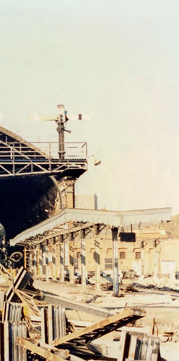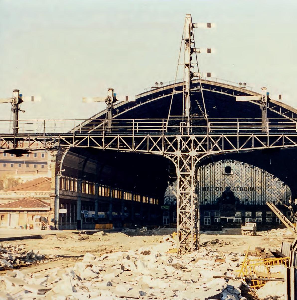 Las obras de remodelación de Madrid-Atocha sirvieron para, además de renovar completamente las instalaciones, poner en marcha el servicio de Renfe Cercanías y una nueva estación de Metro. Sobre los materiales de construcción de la imagen se cimentaría un conjunto de vías clave para la red ferroviaria de España.