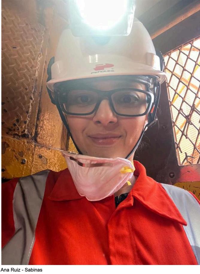 En Sabinas, localizada en Sombrerete, Zacatecas, la ingeniera en minas Ana Estela Ruiz se desempeña como facilitadora de seguridad y destaca que “es muy satisfactorio poder ser parte del cambio y demostrar que la mujer puede desarrollar el mismo papel al frente de una operación o de un grupo de colaboradores”.