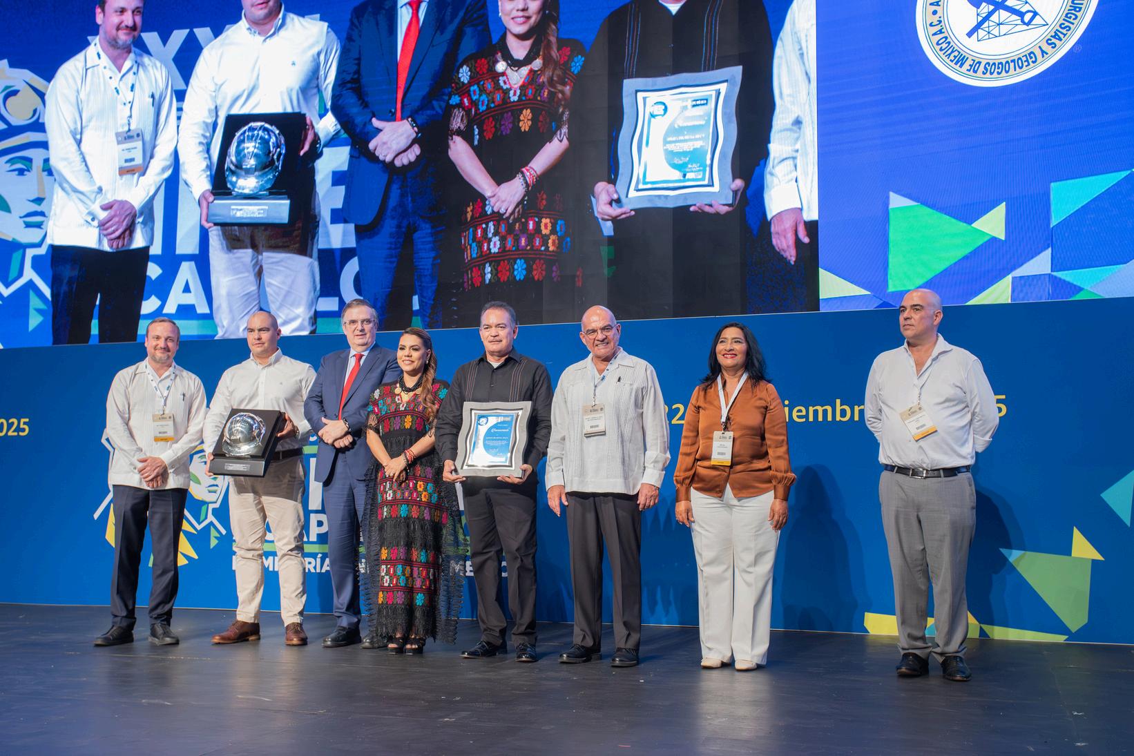 Ebrard, Del Pozo y Evelyn Salgado entregaron los Premios Nacionales 2025, en las categorías de Minería, al Ing. Luis Humberto Vázquez San Miguel; Metalurgia, al Dr Roel Cruz Gaona; Geología, al Dr. Guillermo Gastélum Morales; Educación en Ciencias de la Tierra, a la Mtra. Elizabeth Araux Sánchez, y Medio Ambiente en la Minería, al Mtro. Héctor David Guadalupe Ordaz Sabag Estos premios destacan el papel fundamental de las y los profesionales de la minería, metalurgia y geología en el desarrollo económico y la competitividad global de México.