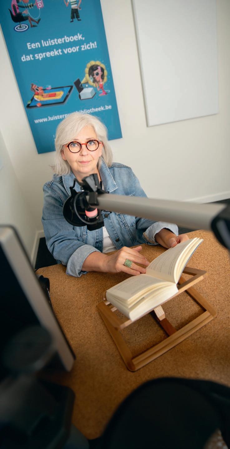 ‘Lezen is mijn passie, ik ga het huis niet uit zonder een boek. Maar lezen is niet voor iedereen vanzelfsprekend. Denk maar aan iemand die slechtziend is of iemand met dyslexie. Luisterpuntbibliotheek en Blindenzorg Licht en Liefde maken verhalen voor hen toegankelijk, door ze te laten inlezen door vrijwilligers. Ik ben fier dat ik zo al 40 jaar mijn leesliefde mag delen.’