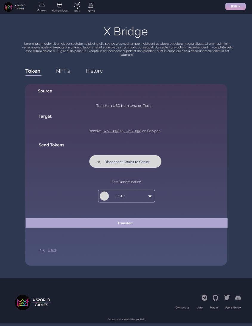 Flow Chart Landing Page Tokens NFT History Source Chain Target Chain Amount Source Chain Target Chain NFT