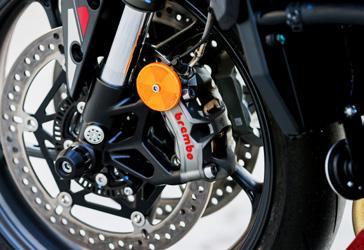 The brakes are phenomenal! These top tier Brembo Stylema calipers really drop the anchor on this bike. With just a touch, the immense power of these stoppers make your eyes pop out. It has a strong initial bite and a linear braking delivery giving you a perfect feel everytime. These are great for braking late deep into corners or for just getting the bike stopped from high speeds to evade obstacles. The IMU controlled ABS is not at all intrusive which is awesome, giving you much control and confidence.