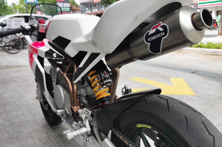 Powered by a Daytona Anima 190 cc 4 valve SOHC single cylinder engine, the GP 2's heart feels like a production bike spinning quickly, responding to every throttle input. It is equipped with a fully adjustable shock at the