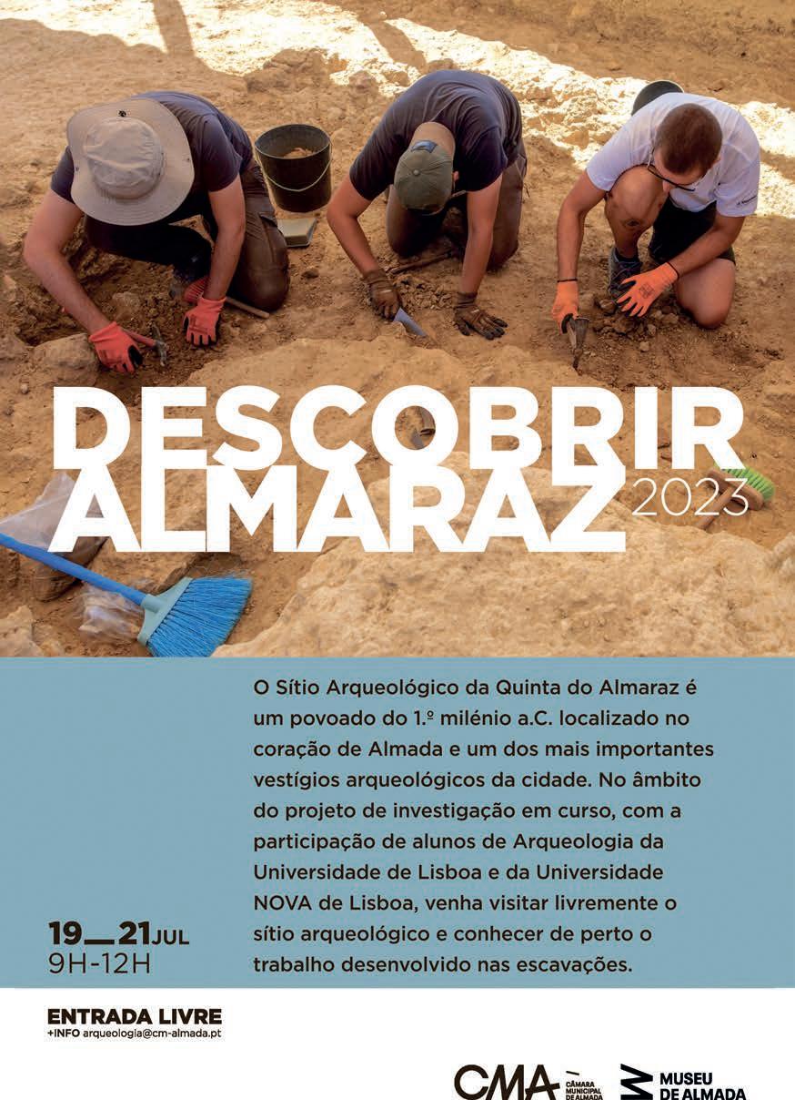 Em julho realiza-se a quarta campanha de escavação do projeto de investigação em desenvolvimento no Sítio Arqueológico da Quinta do Almaraz, um povoado do 1.º milénio a.C. situado no coração da cidade de Almada. Durante os dias 19, 20 e 21 de julho pode conhecer o trabalho desenvolvido pelos arqueólogos em contexto de escavação, numa visita livre a este povoado milenar.
