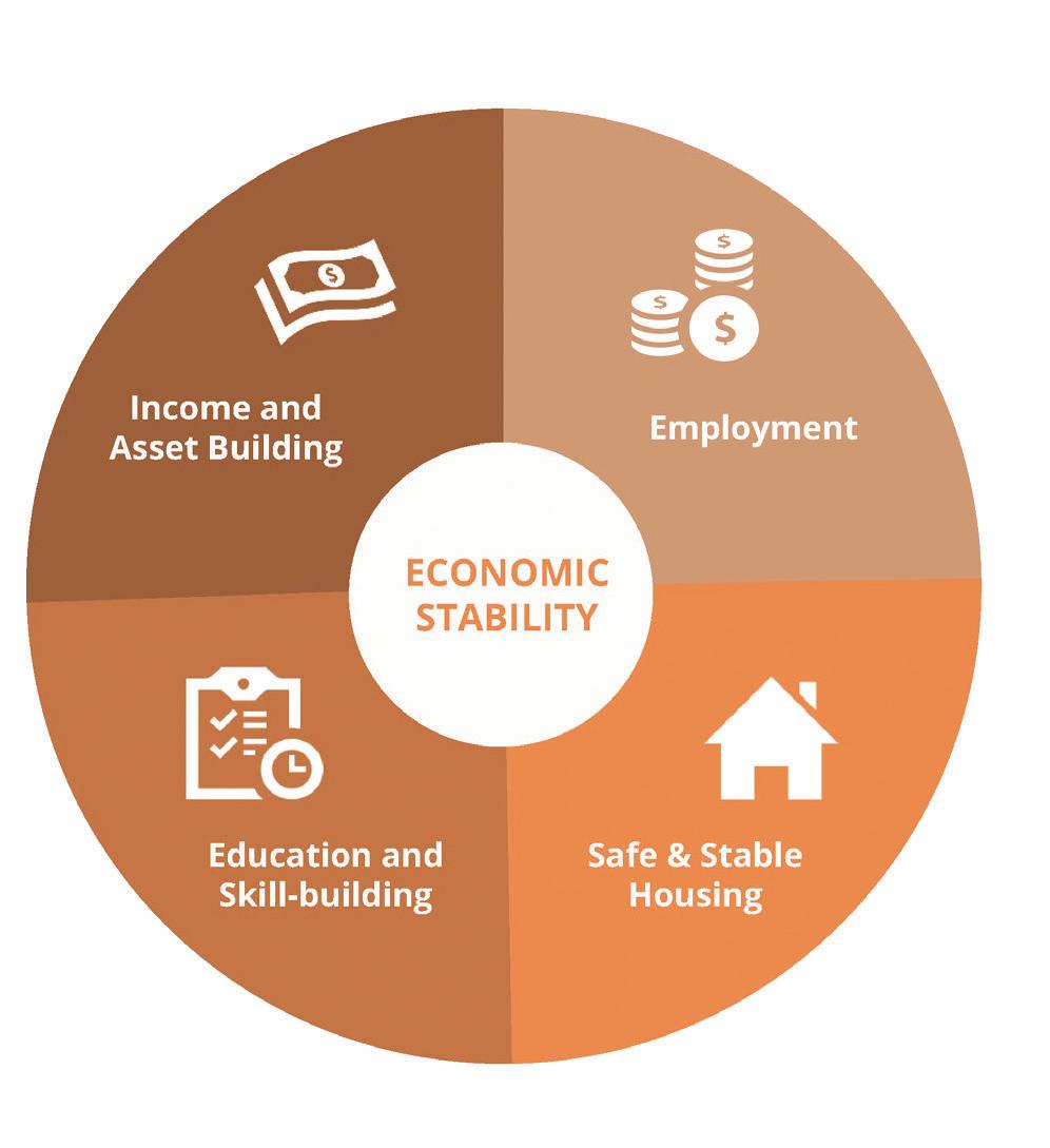 Economic Stability includes programs centered on employment, safe and stable housing, education, and income and asset building.