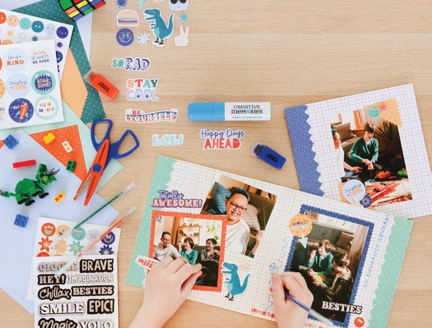 Decorate your pages with photo-safe die cuts and lasercut border embellishments (see page 18).