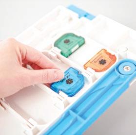 Insert the cartridge into the Border Maker until it clicks in place, raising the white lever.